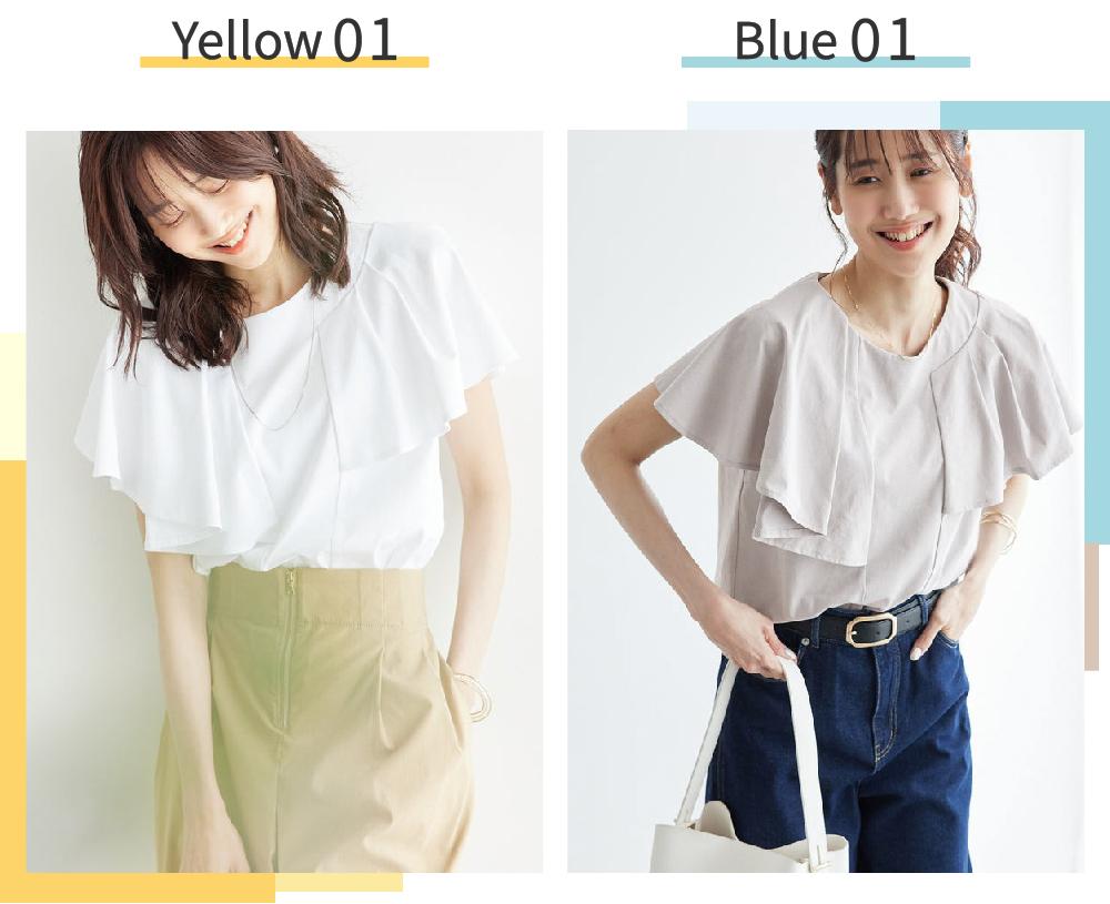 ラッフルスリーブをアシンメトリーデザインにした、さりげない個性を発揮するカットトップス。