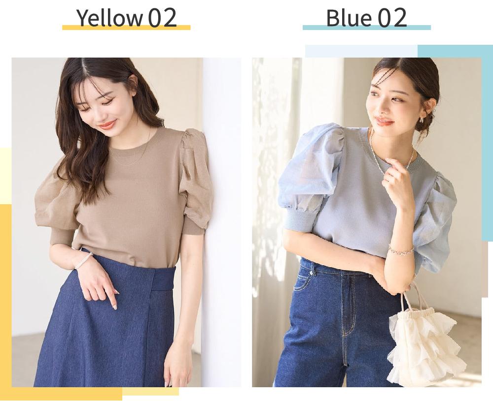 身頃は柔らかいニット生地、袖部分はふんわりとしたパフスリーブのシアー素材で、異素材を組み合わせた高見えニット。