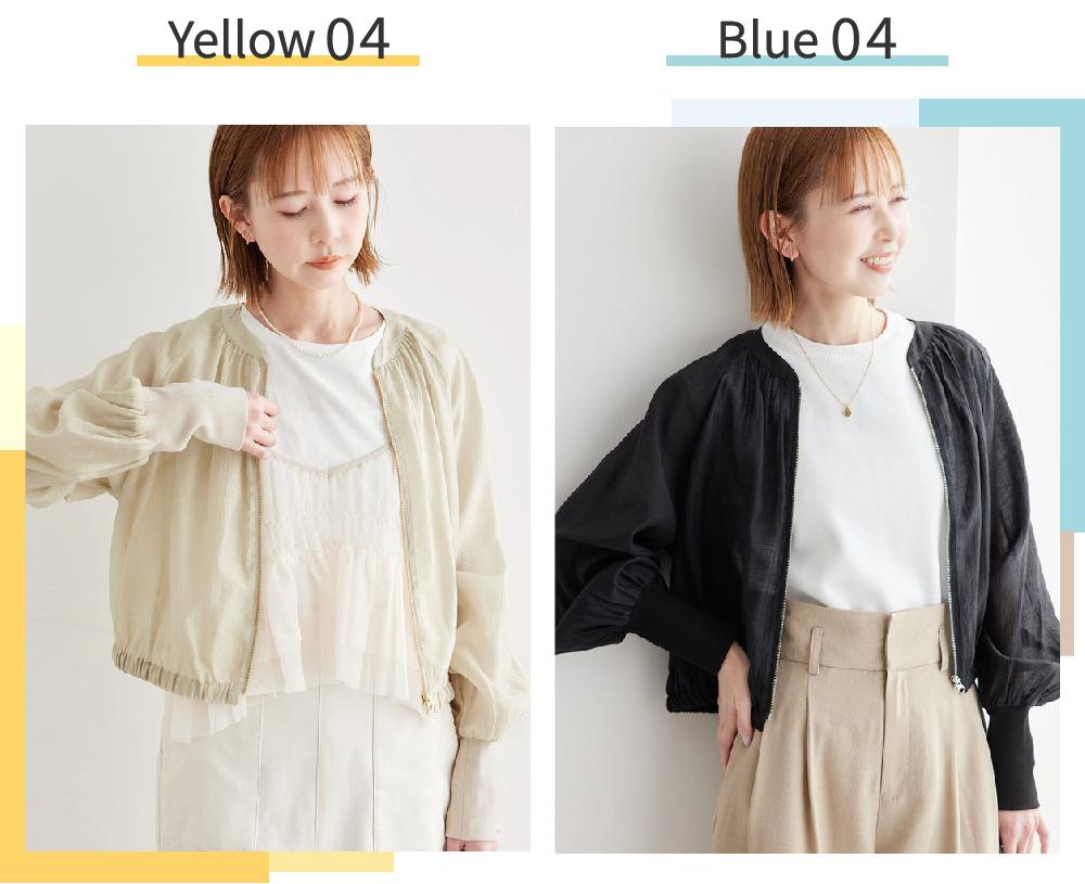 ショート丈のブルゾンは、ウェーブタイプなら一枚は持っておきたい。ブラウスライクに気軽に着こなせるシアーブルゾンは、どんなアイテムの上からでも使いやすいですよ。