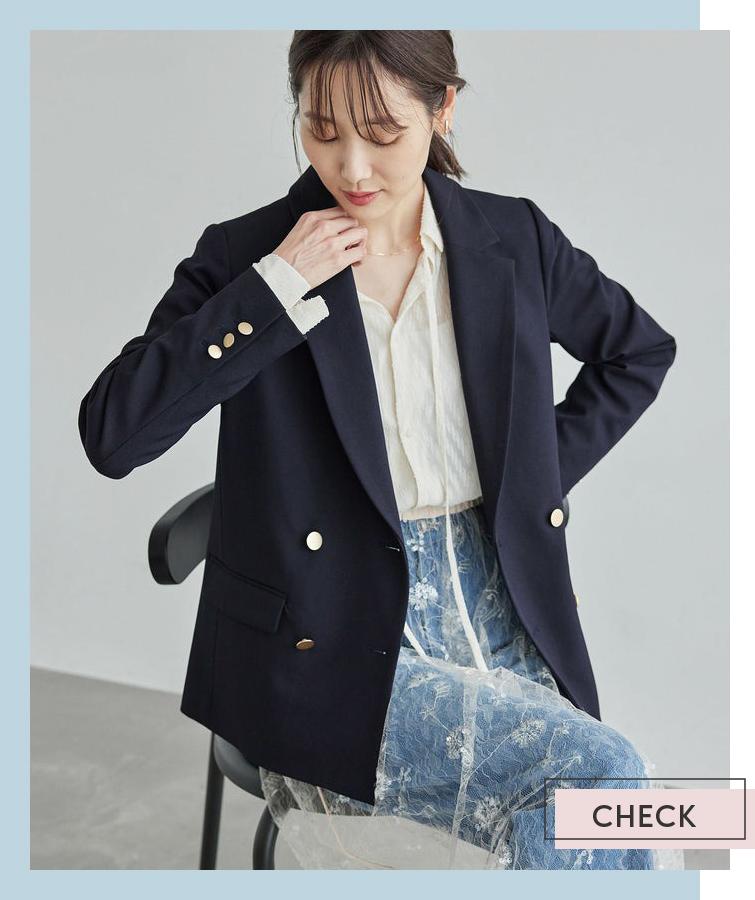 トラッドな秋コーデに欠かせない金ボタンジャケット。