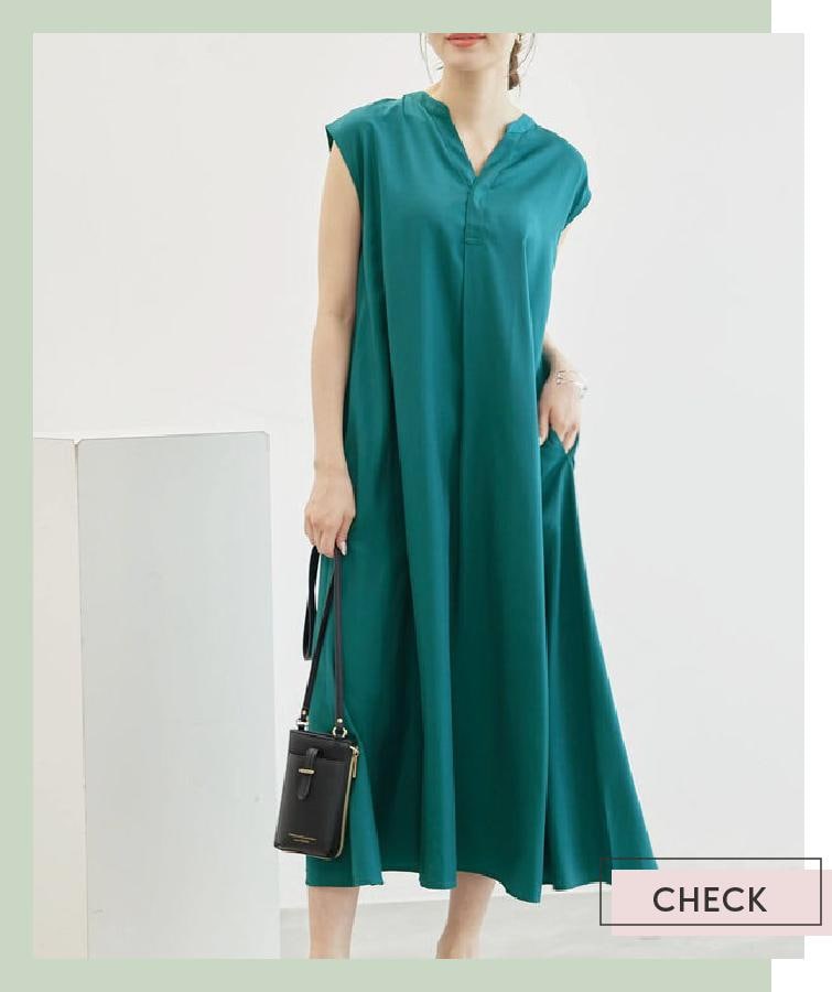 襟付きできちんと感があり、一枚でサマになるコーデ不要のワンピースは「今日何着よう?」と迷った朝の救世主。