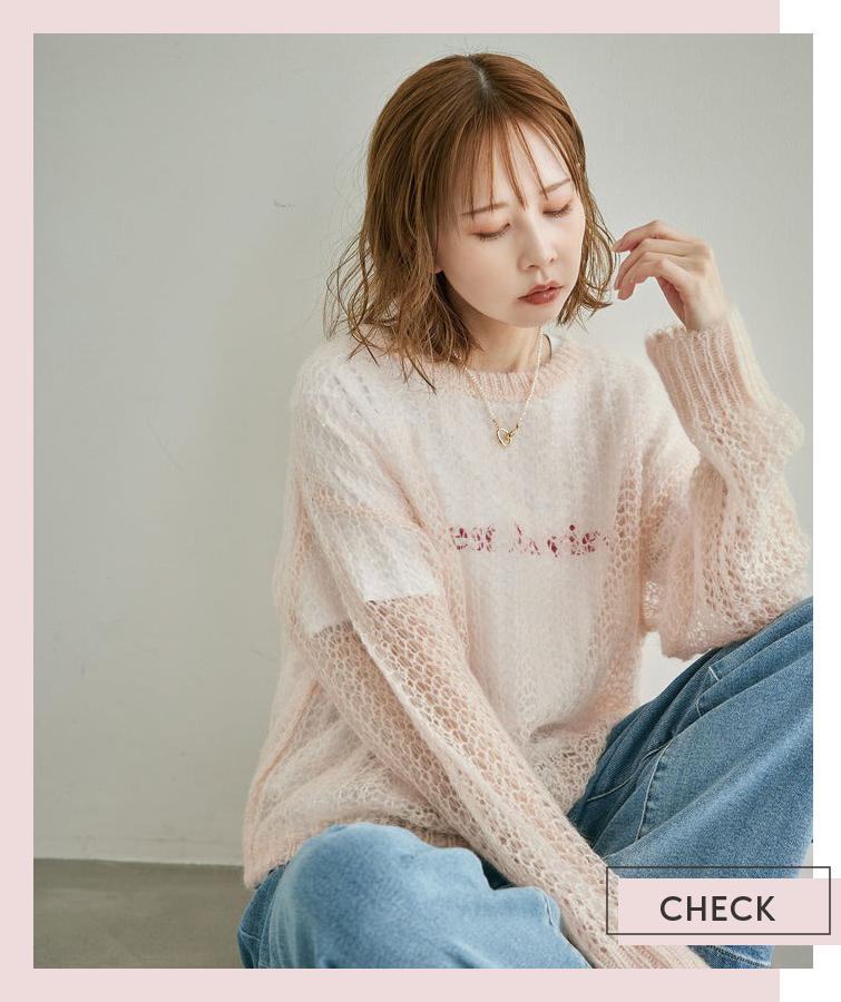 色もデザインも甘めなので、ボトムスはあえてデニムなどカジュアルなパンツ合わせがおすすめ。