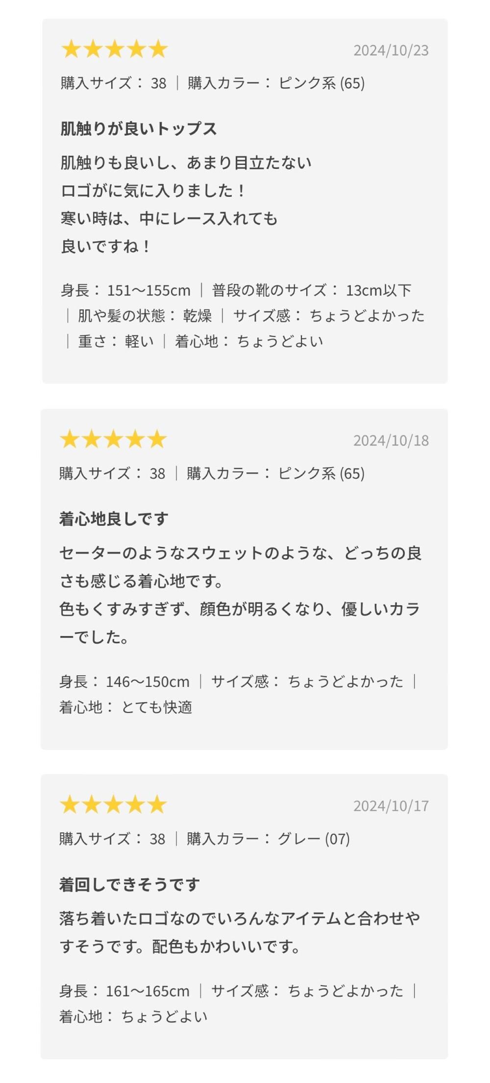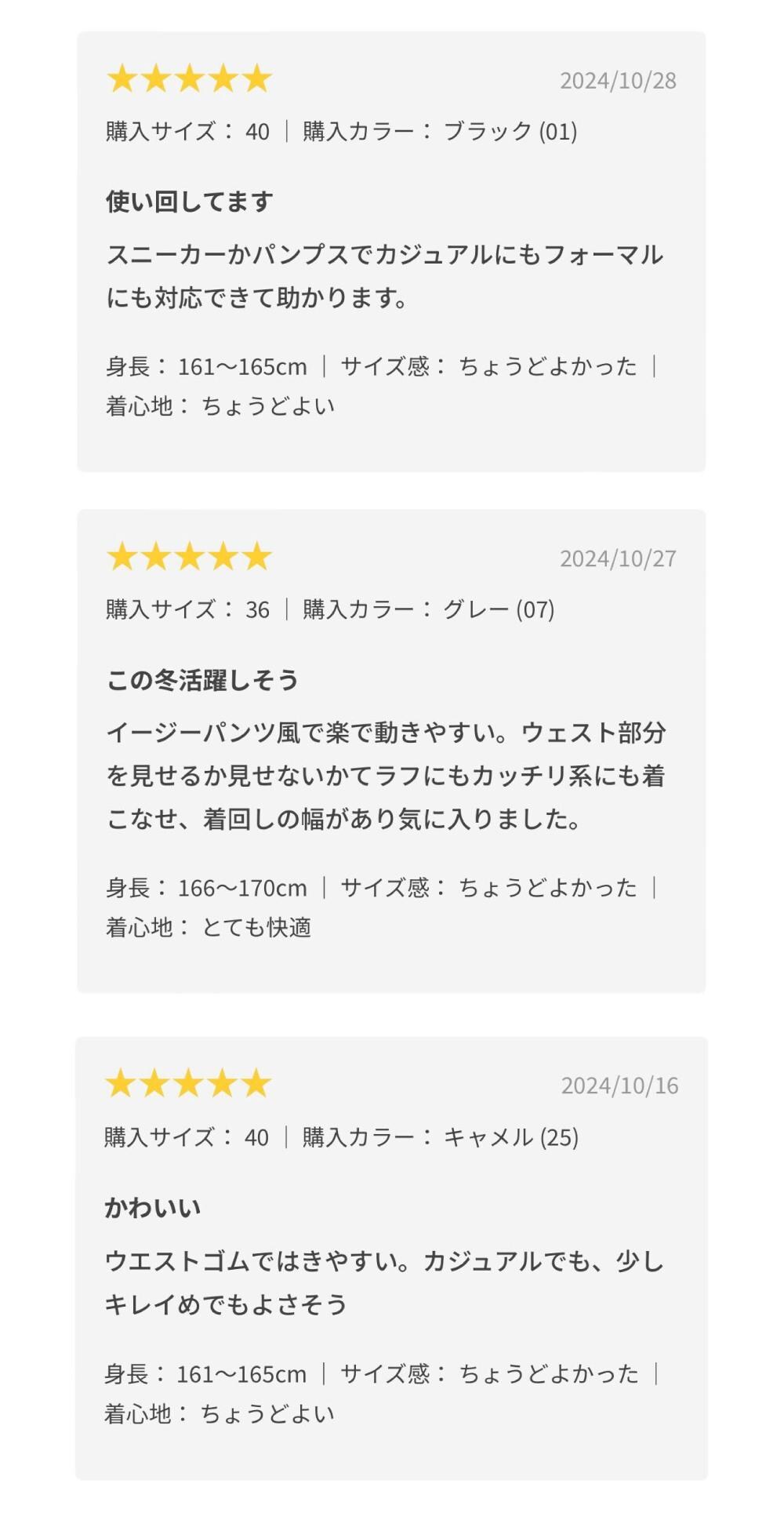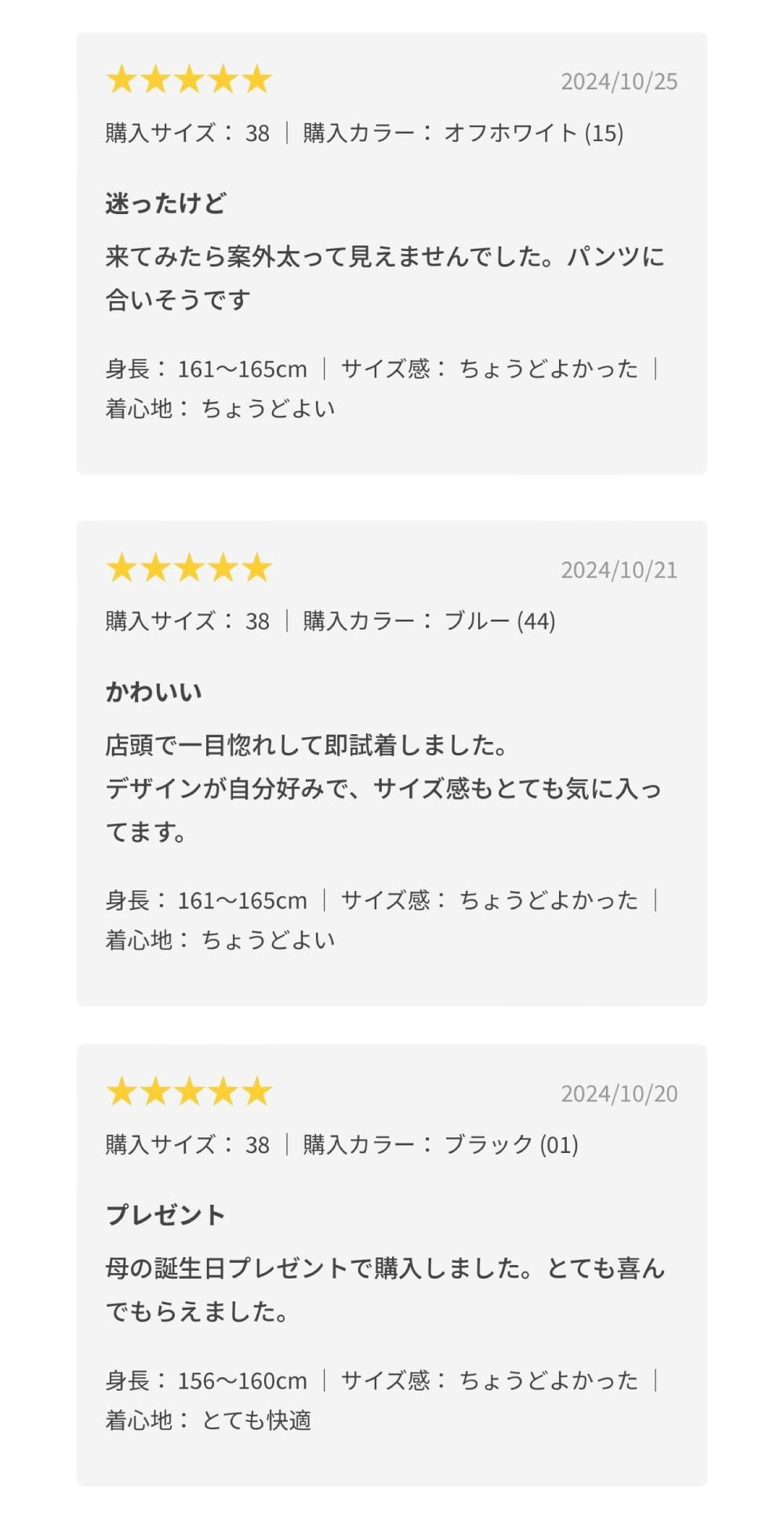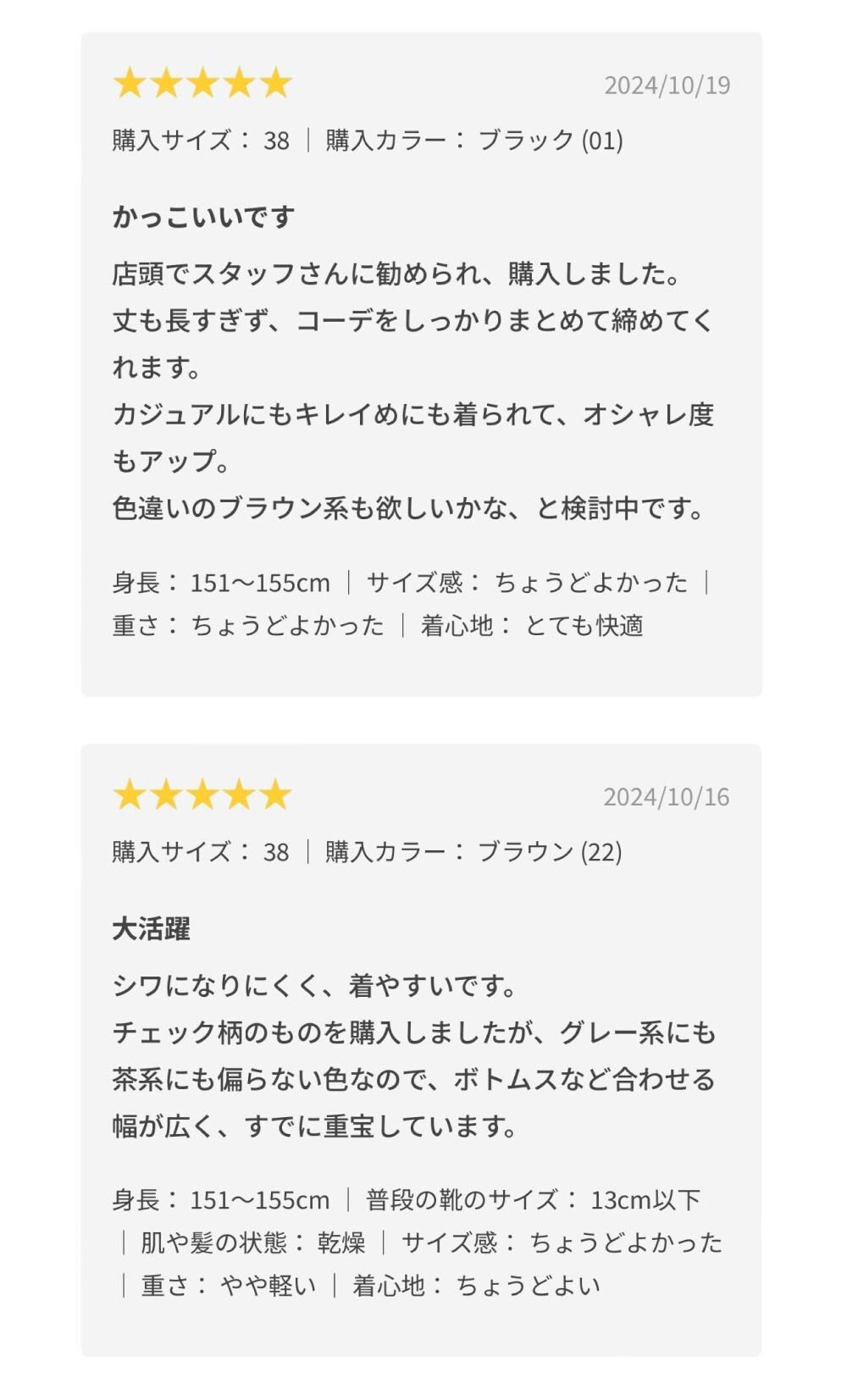 あなたの投稿するレビューも皆さまの着こなしの手助けになりますので、ぜひご感想をお寄せください。