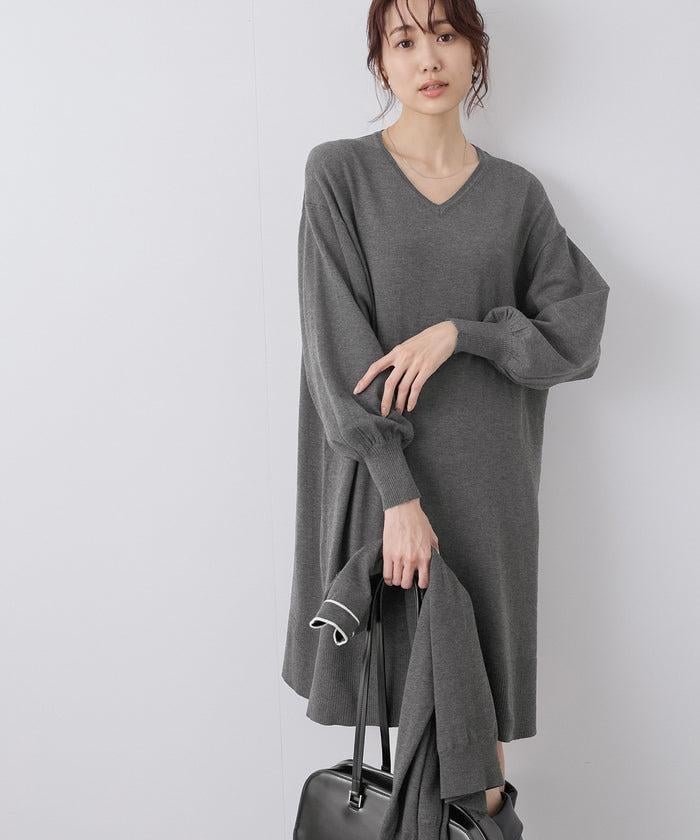 Vネックチュニックニットワンピース