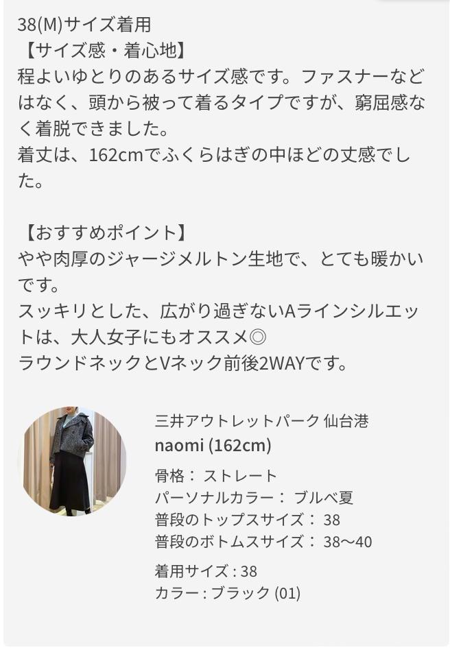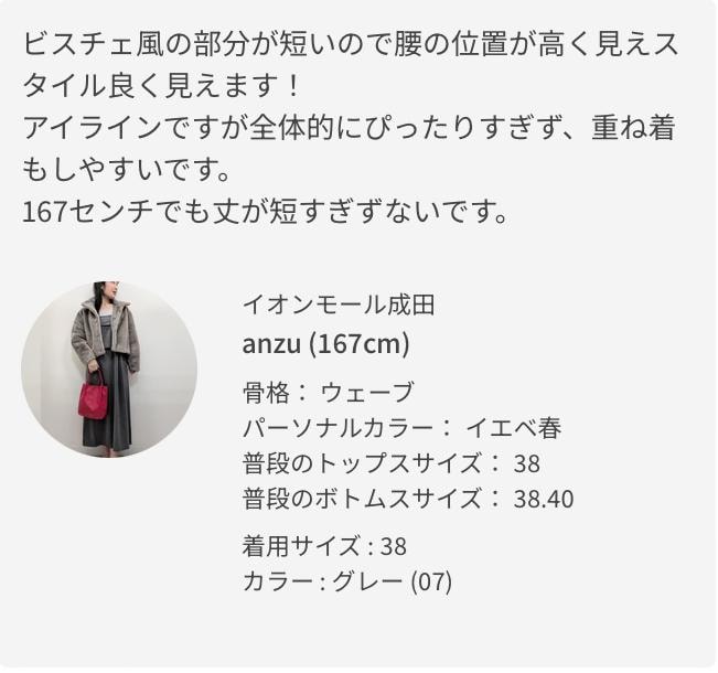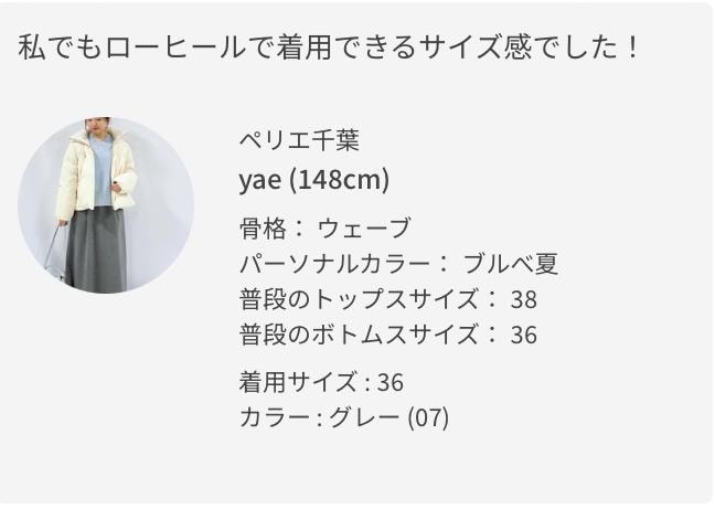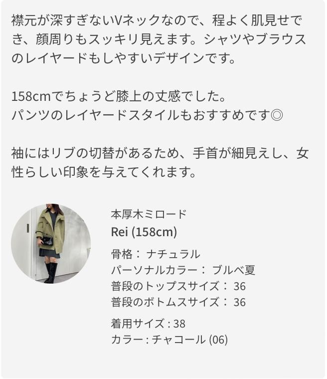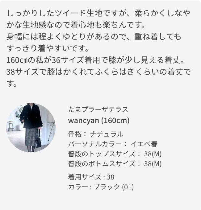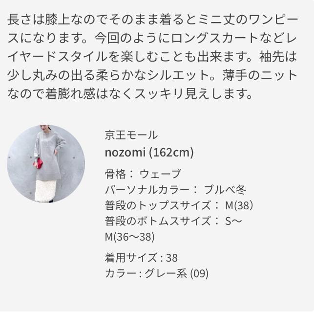 ※36サイズは38サイズより着丈が20cm短いです。