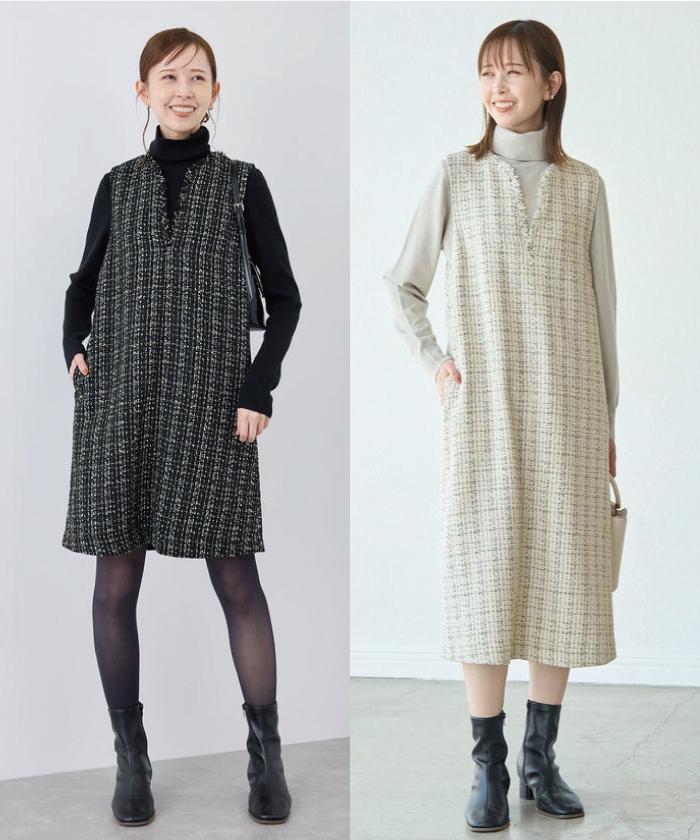 着丈が選べるラメツイードジャンパースカート