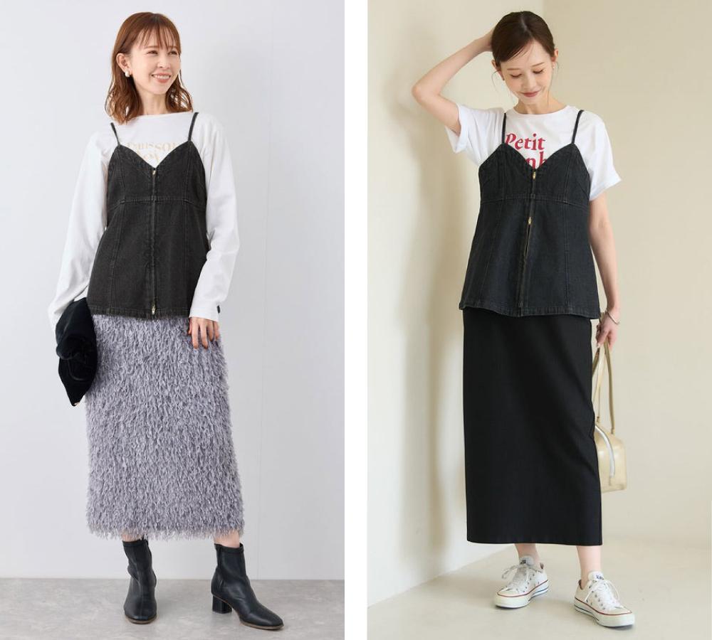 デニム素材のベストは、シンプルトップスに重ねておしゃれ度がアップするコスパ最強な1枚。