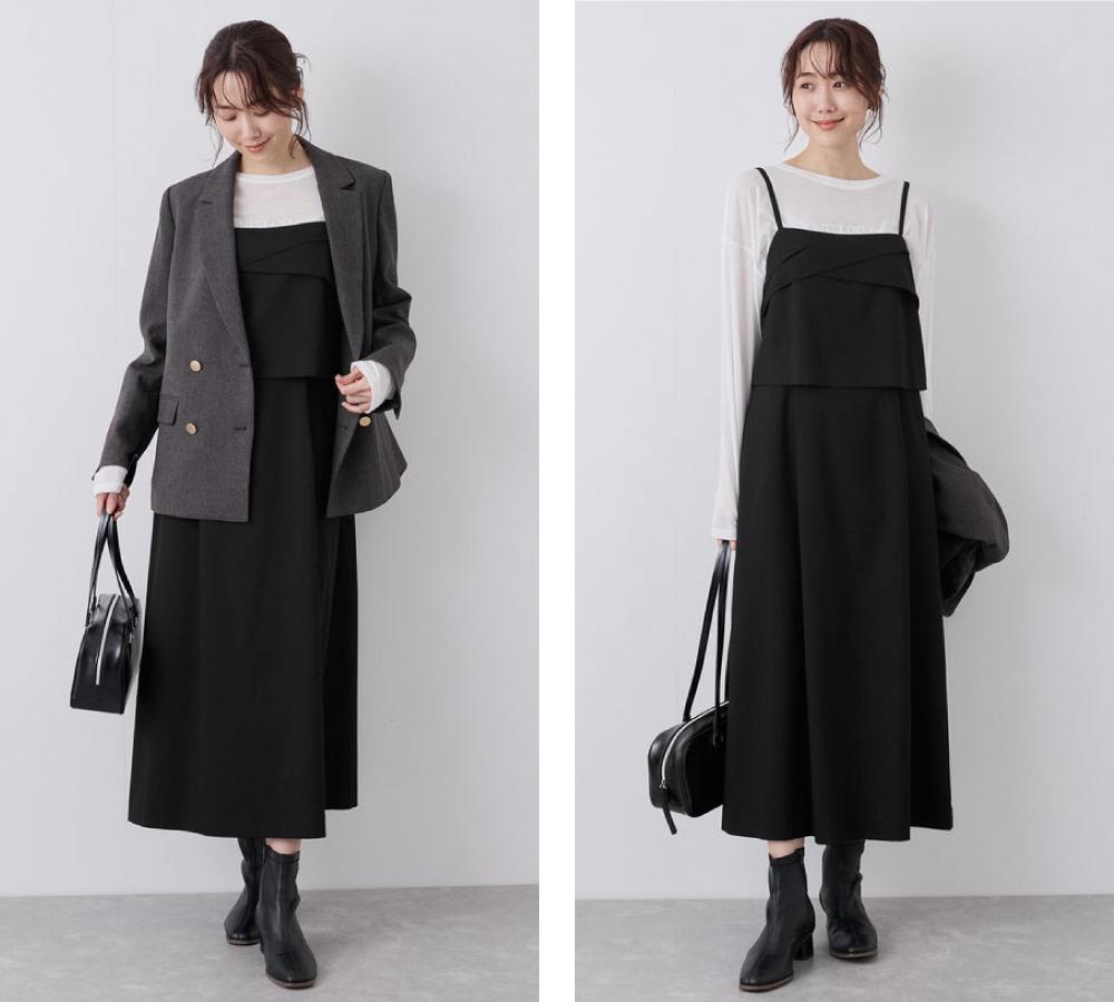 大人も着やすいデザインのキャミワンピースは、インナー次第でオールシーズン着用できるので、ワードローブにあると安心な1枚です。