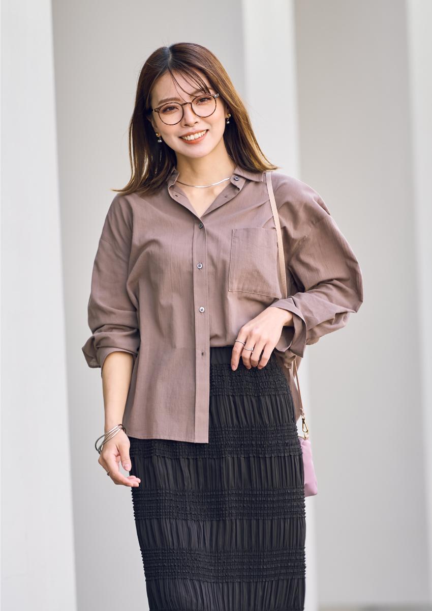 今季登場した“透け感のあるピンクブラウス”は、シアーな質感で大人っぽく、でも色は可憐で大人っぽい甘さがポイント。まさにファッションの方向性に悩み始める30代に最適なバランスを備えたブラウスです。