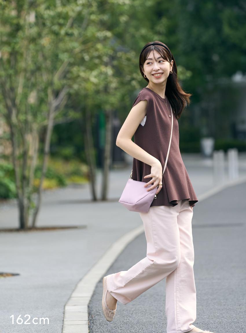 「どんなベーシックカラーにもすっと馴染むベージュがかったピンクは、思いのほか出番が多いと思います。とくにきれいめカジュアルがお好きで、シンプルな服装にバッグで差し色を足したいなと思う方にぴったりです」