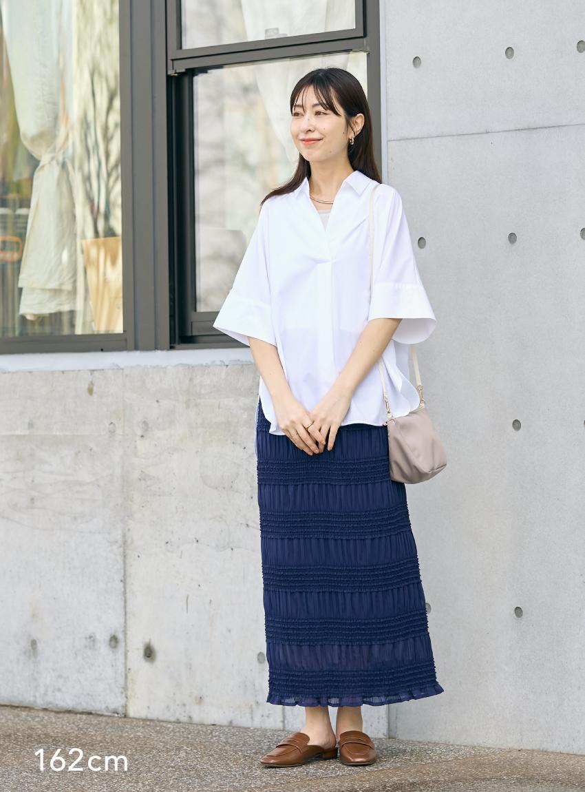 友人が待ち合わせ場所に行った時、思わず素敵!がもらえる好感度のあるシャツコーデ。