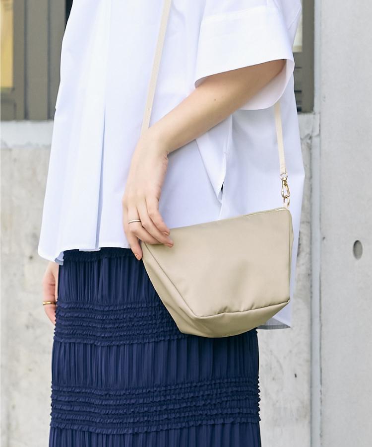 ベージュのショルダーが主張しすぎない差し色になって清潔感を添えてくれます。