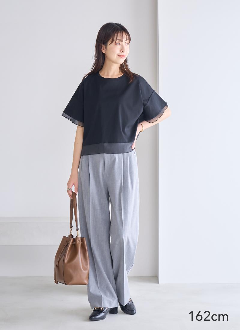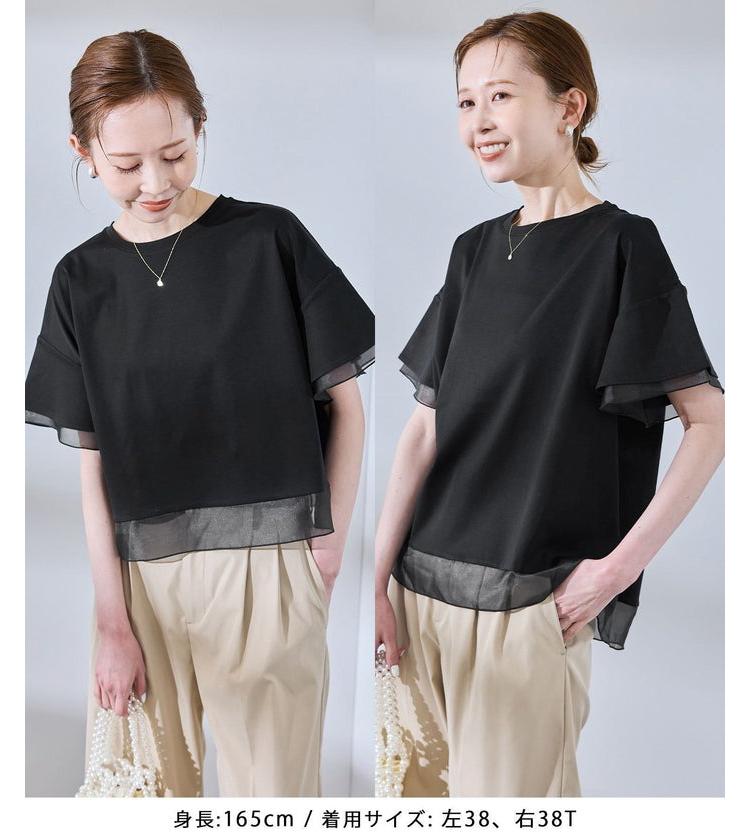 袖口や裾がシアーな布帛素材で切り替えられたブラウスです。