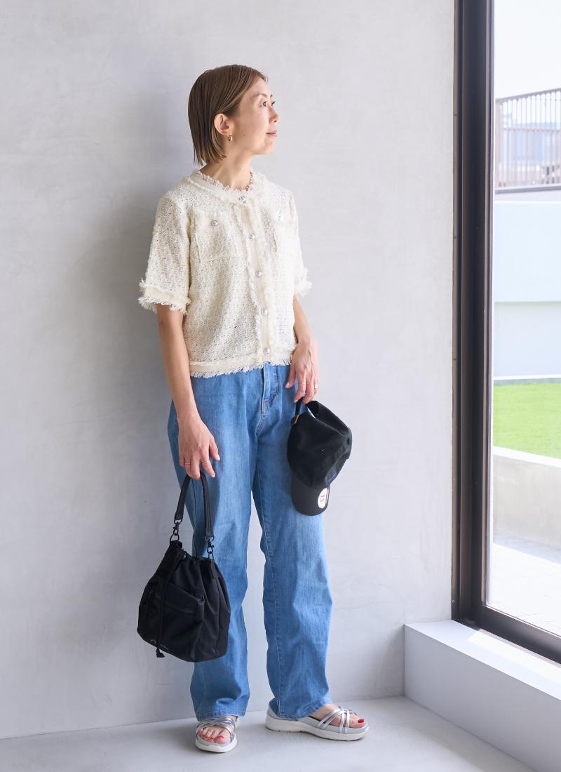 ▶No.1_ツイードライクハーフスリーブカーディガン