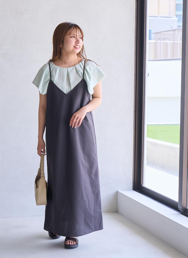 ラッフルスリーブなので気になる二の腕もカバーしてくれる嬉しい一枚。