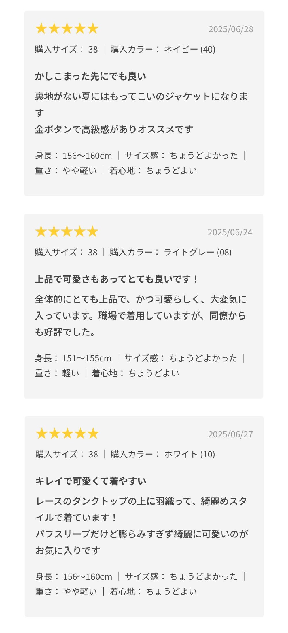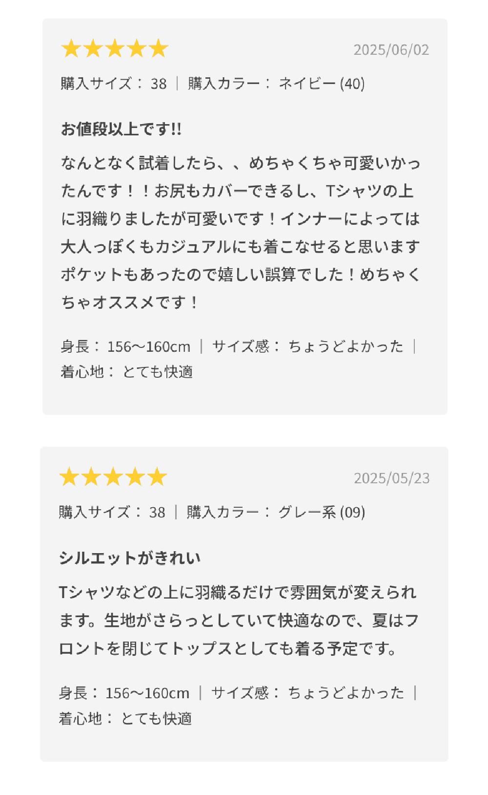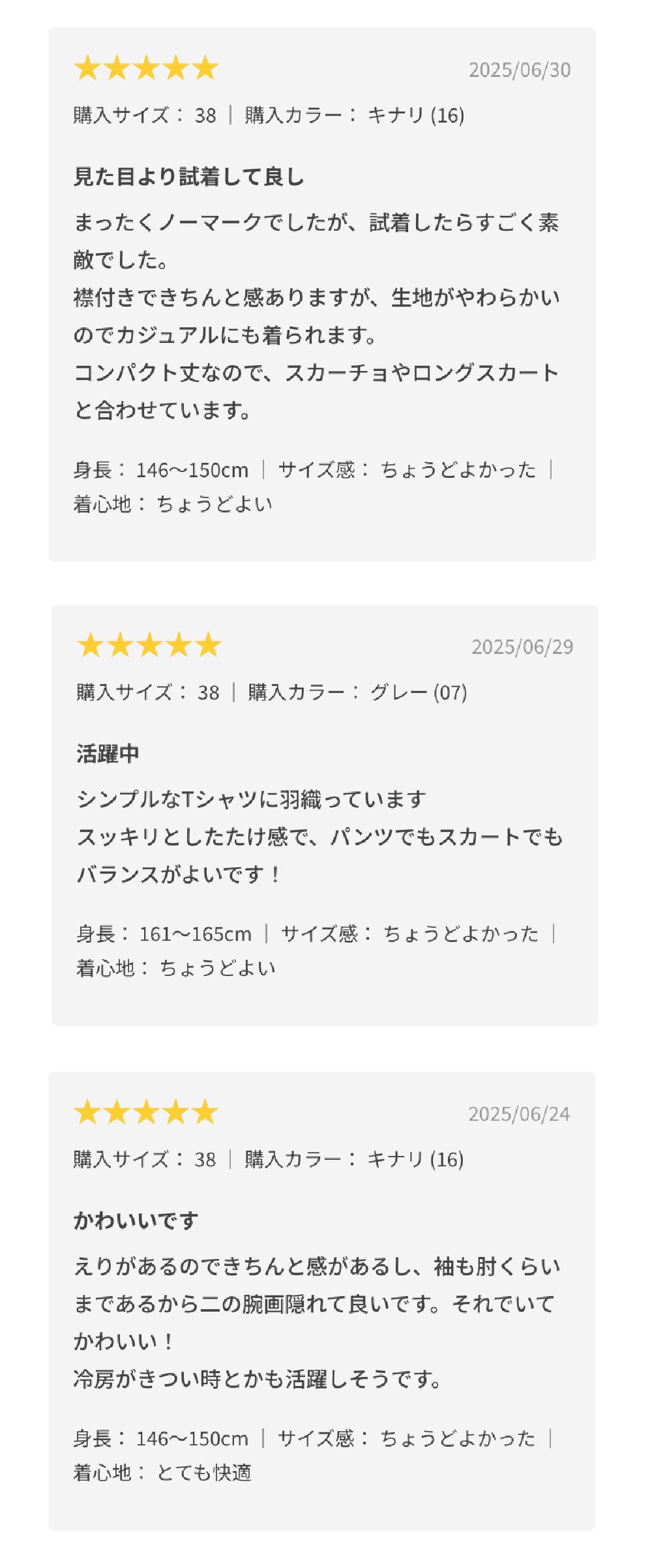 あなたの投稿するレビューも皆さまの着こなしの手助けになりますので、ぜひご感想をお寄せください。