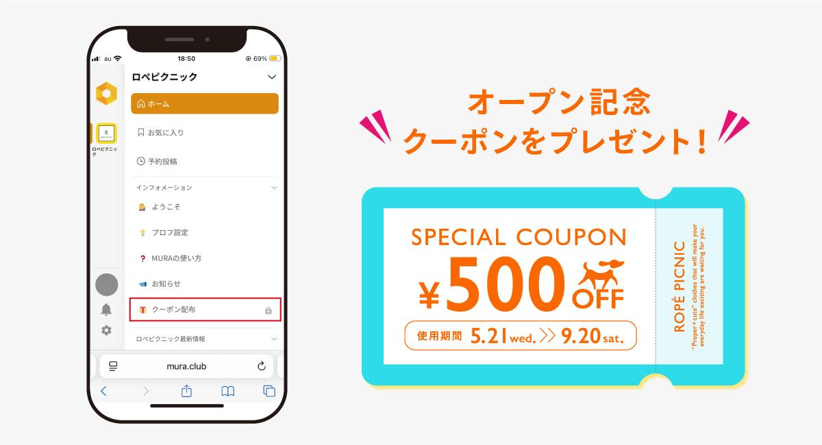 ご登録のお客さまに、2025年9月20日までの期間中、店舗または公式ECサイトで税込3,000円以上のご購入で使用できる500円OFFクーポンをプレゼントいたします。