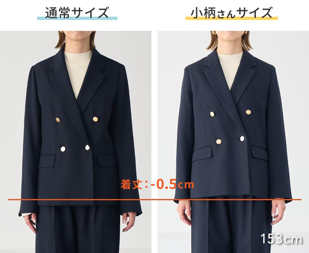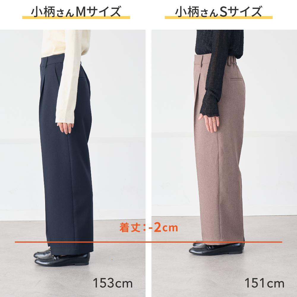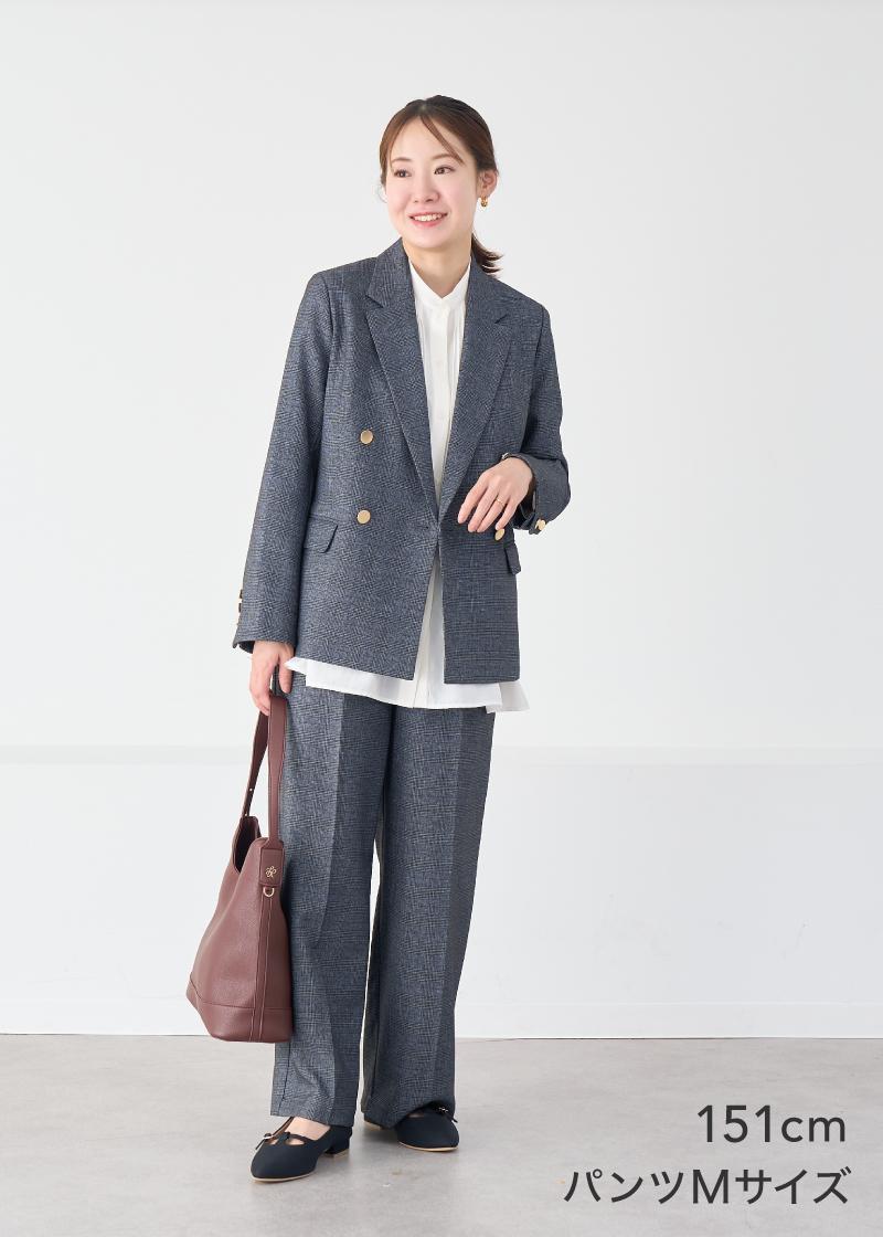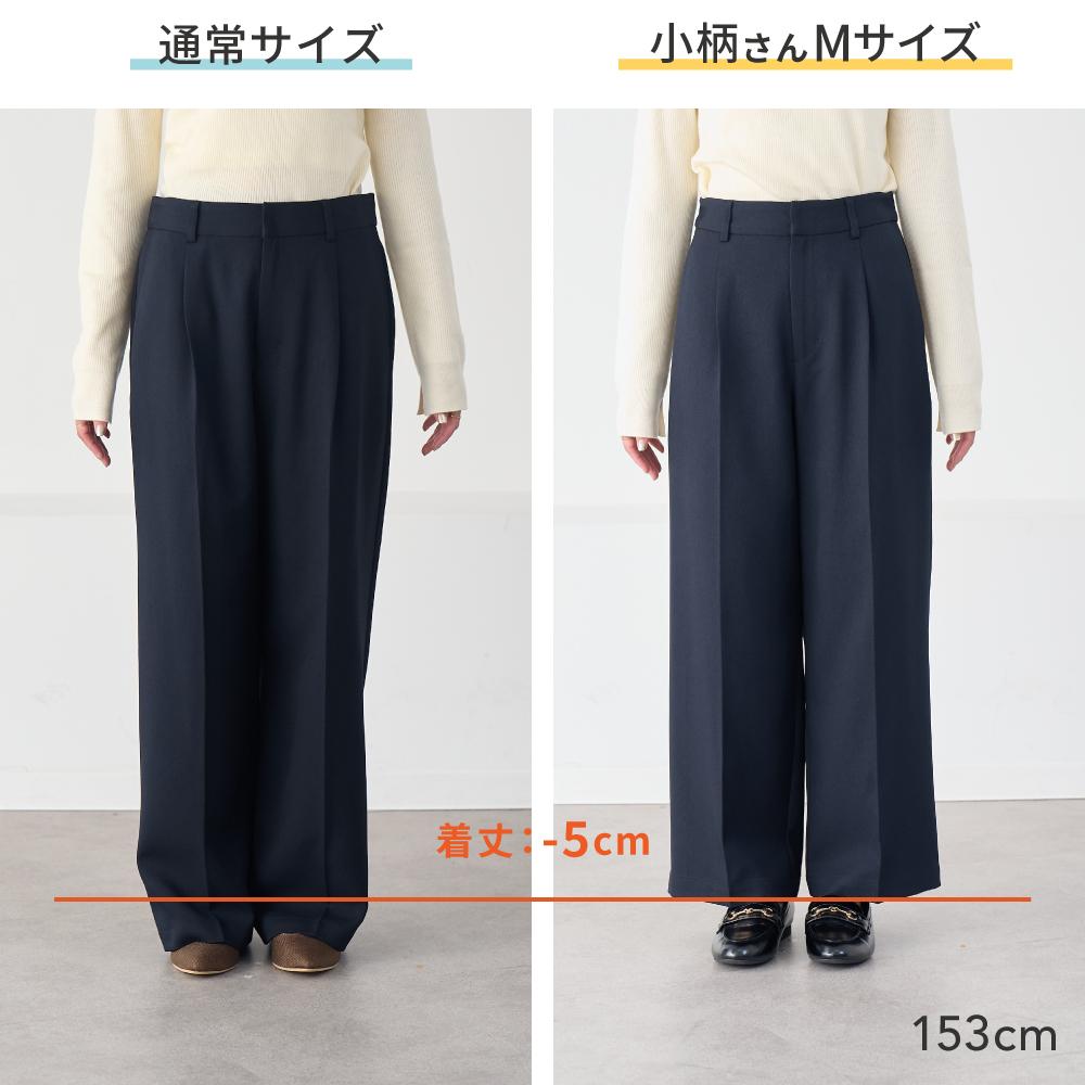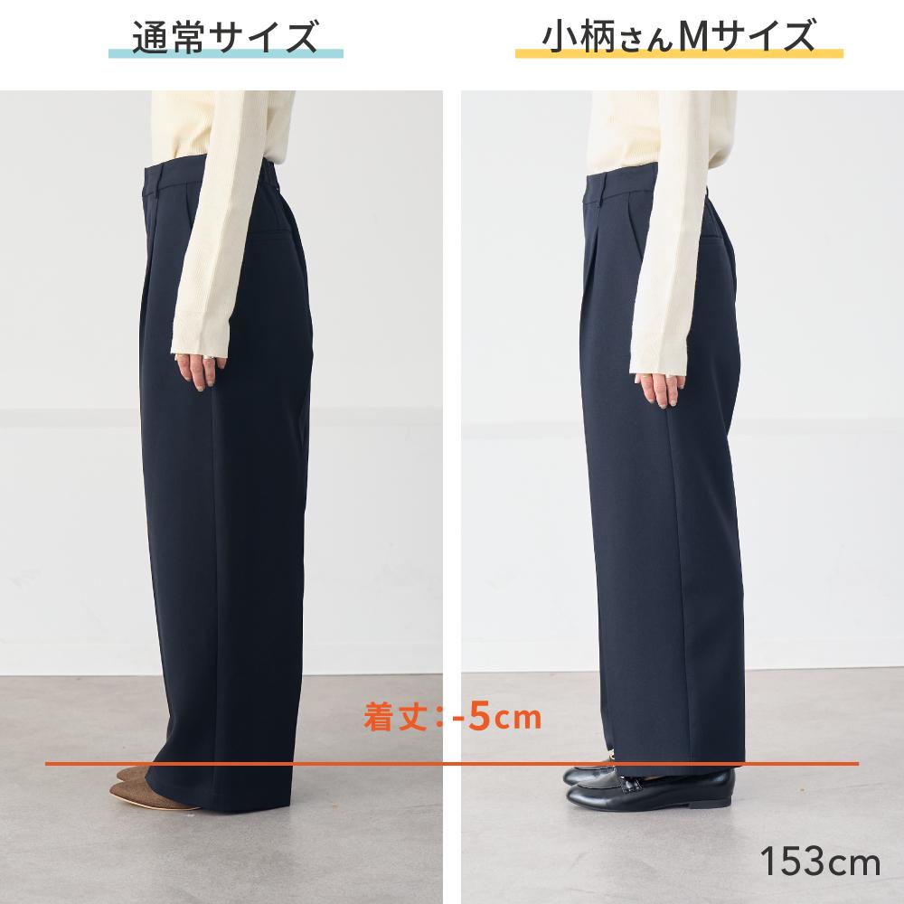 小柄さんがジャケットとのセットアップ着用の際に重くならないように、 きれいに穿きこなせるワイドパンツのサイズとシルエットを細かく追求しました。