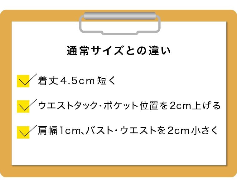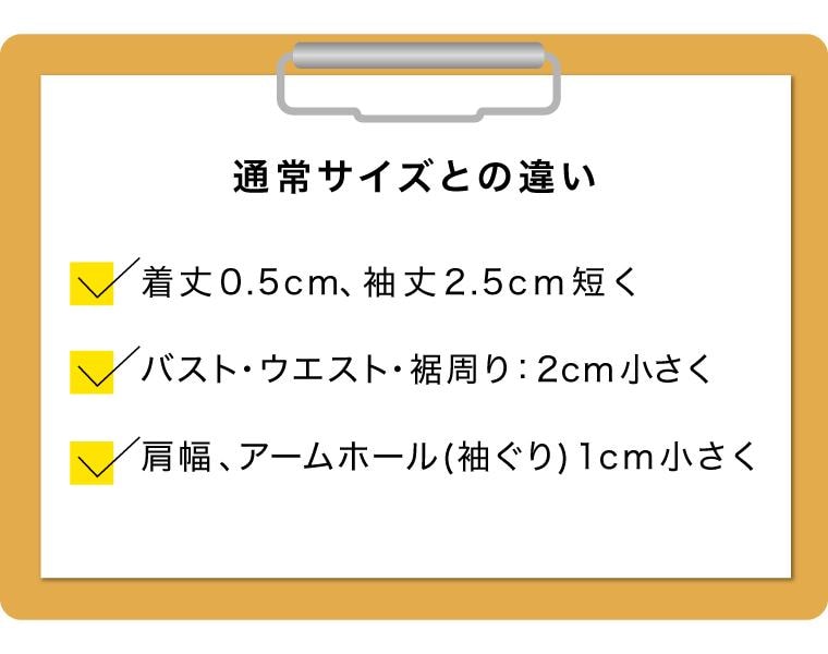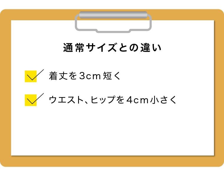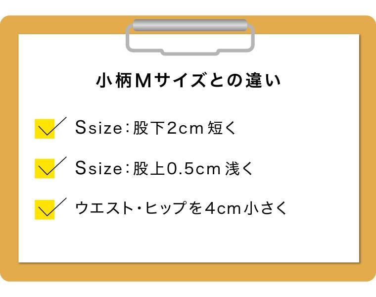 「小柄さん」と言っても150cm前後で10cmの差があるため、S/Mの2サイズ展開に!