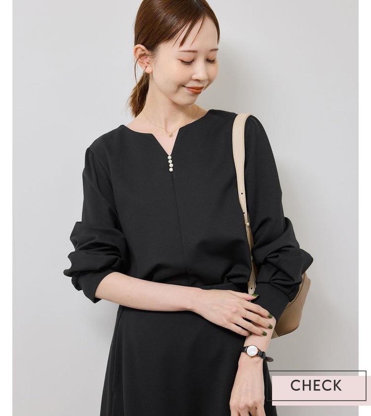 上品なパール付きで、裏地なしでも透けの心配がない程よい肉感がポイント。