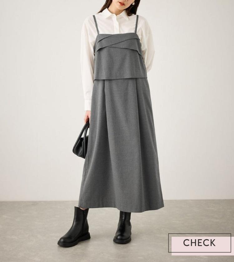 胸元のドレープが新鮮なキャミソールワンピース。