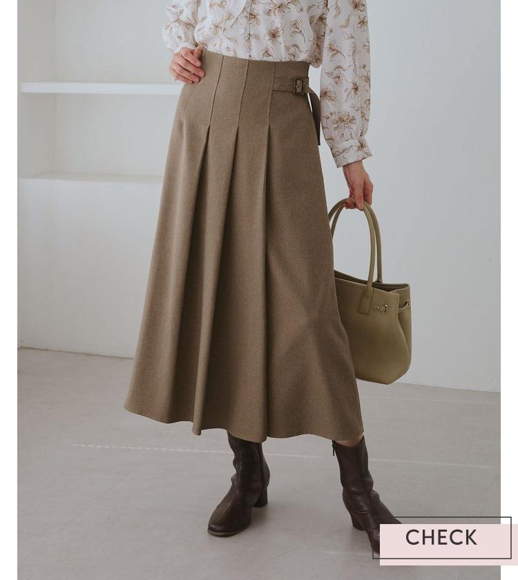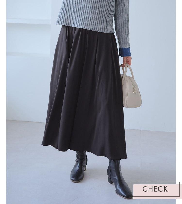 フロントタックで立体感を出したキルトスカートは、広がりすぎないすっきりシルエットで大人も履きやすいロング丈。