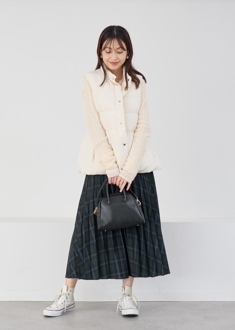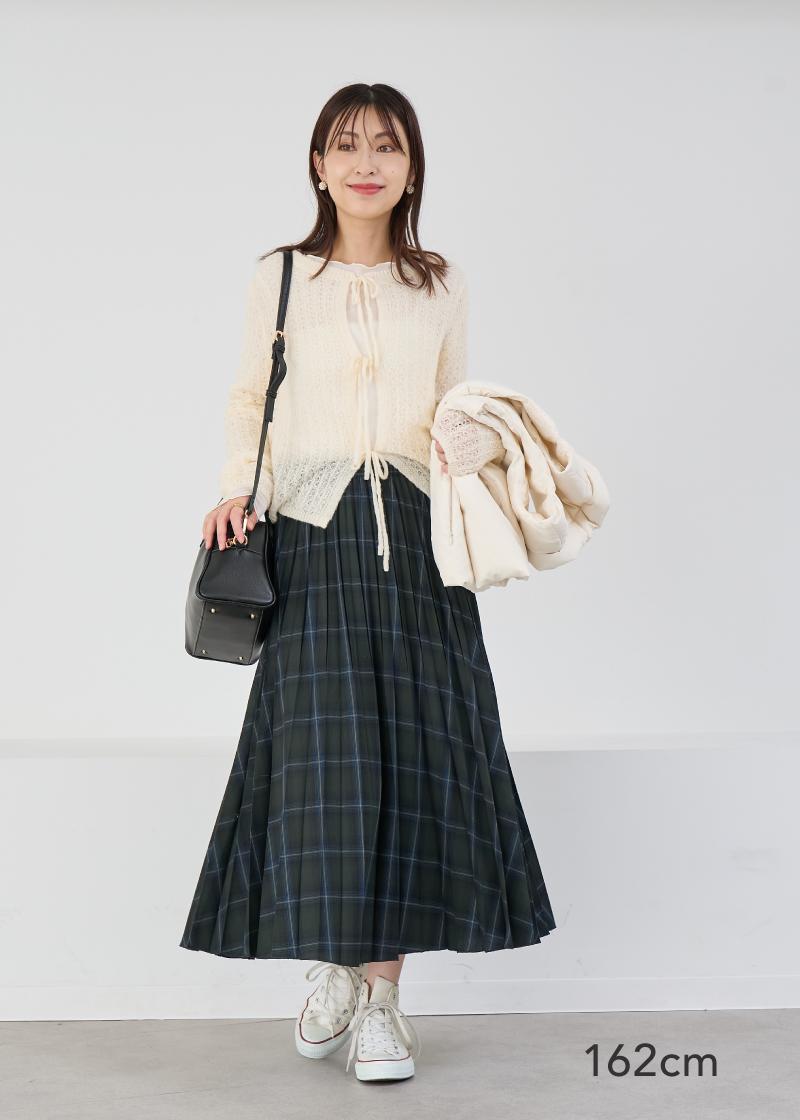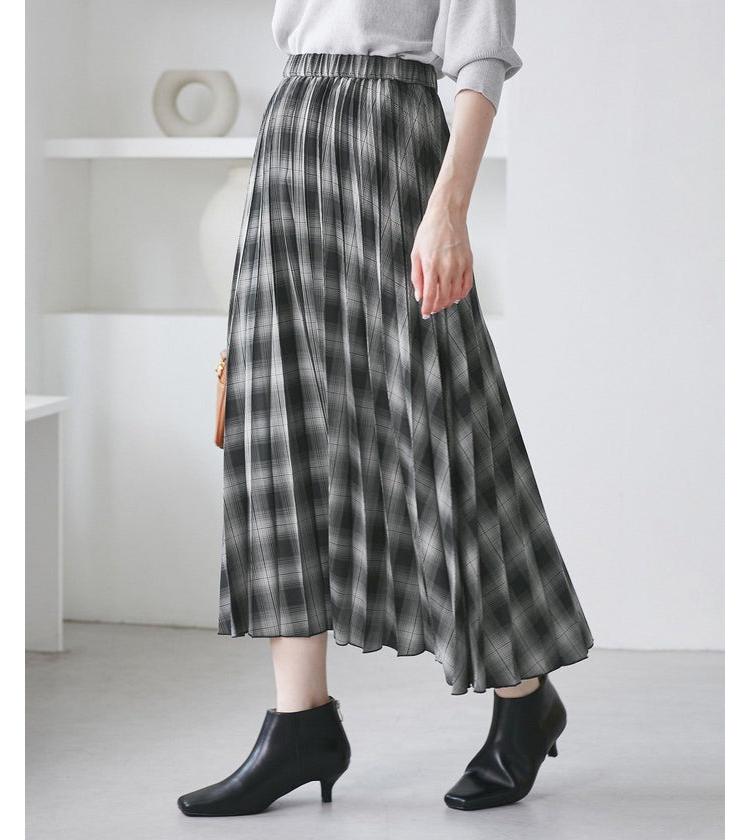 そこで持っていったのは、チェック柄のロングプリーツスカート。
