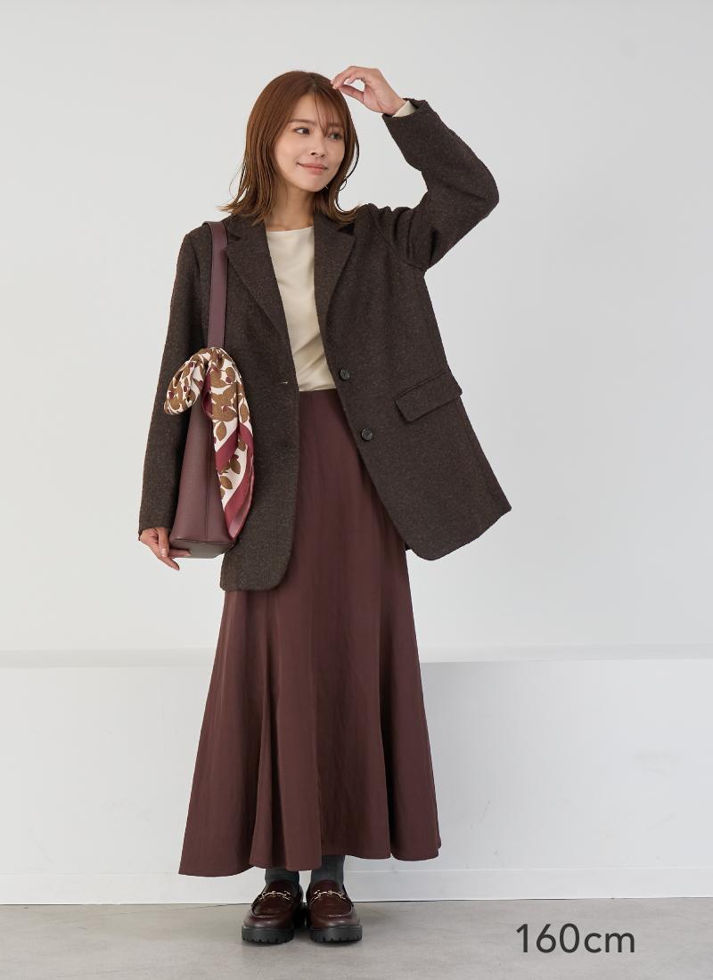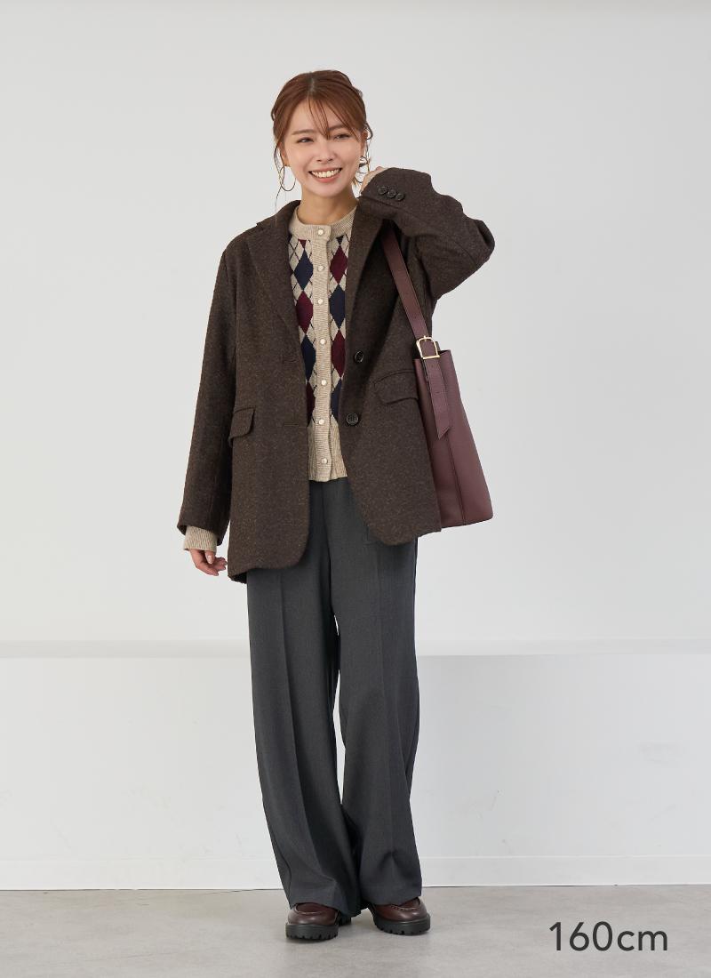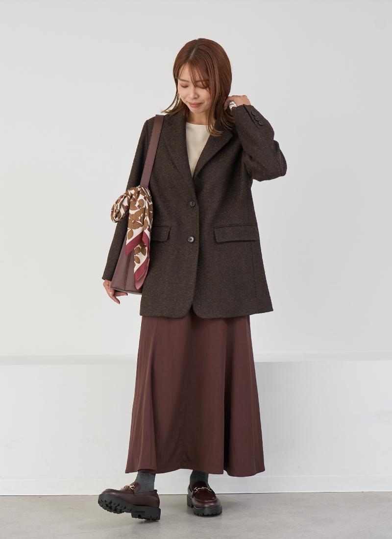 アウターはツイード素材のブラウンカラーのジャコットをチョイス。