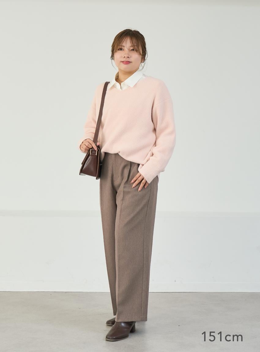 身体の厚みによって、ふわふわニットは着太りしやすいストレートタイプ。