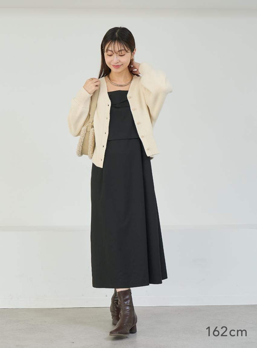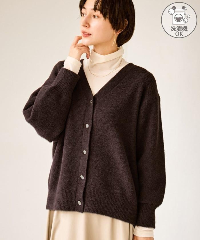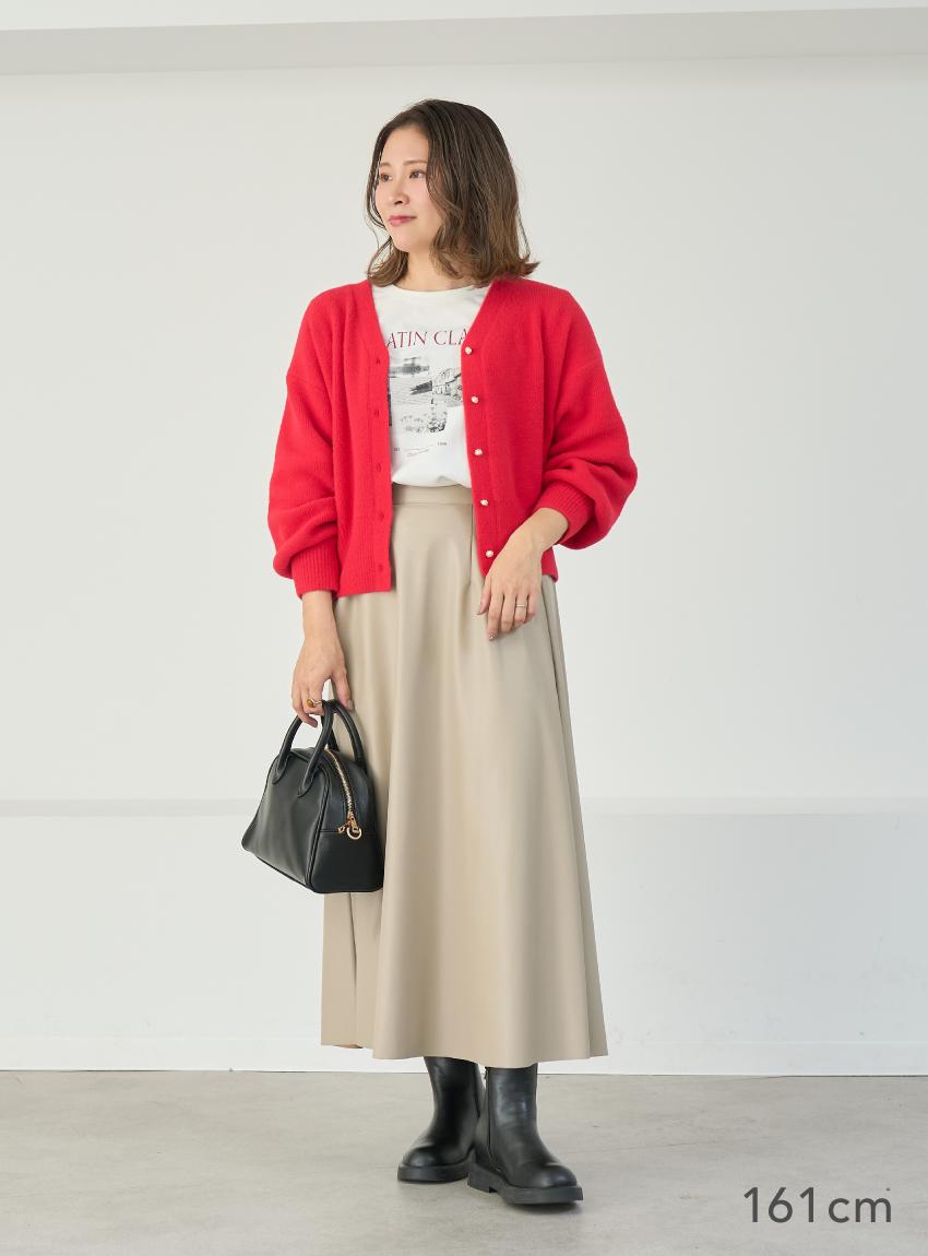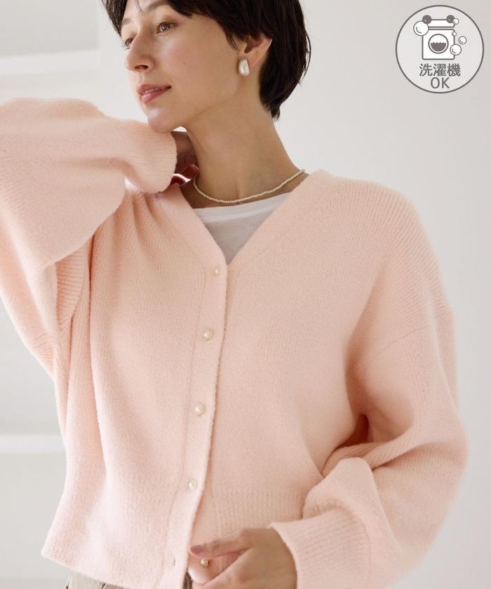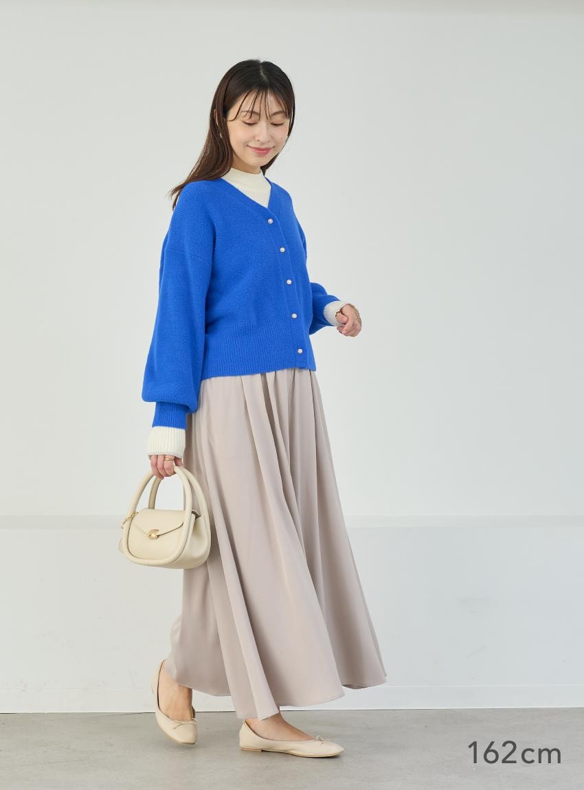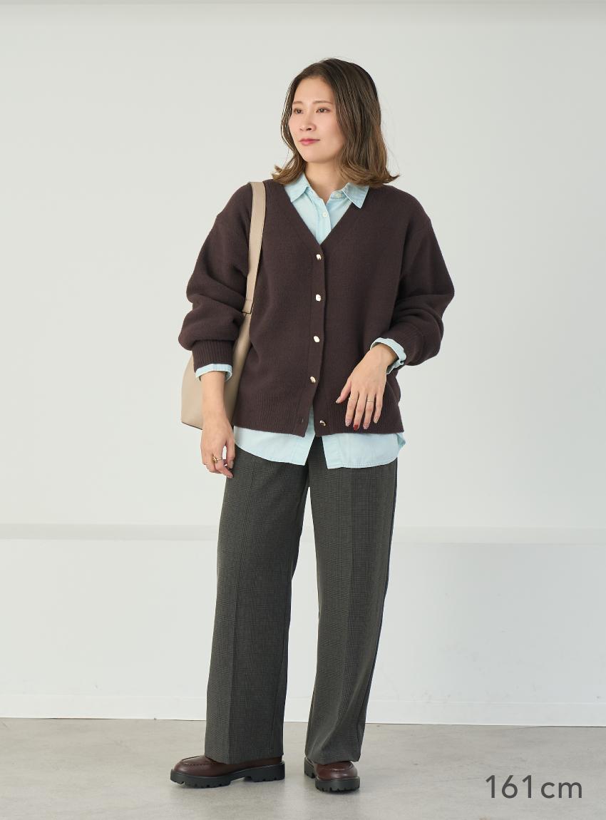 さらに、上品なパールボタンが秋冬コーデを華やかにしてくれる一枚。