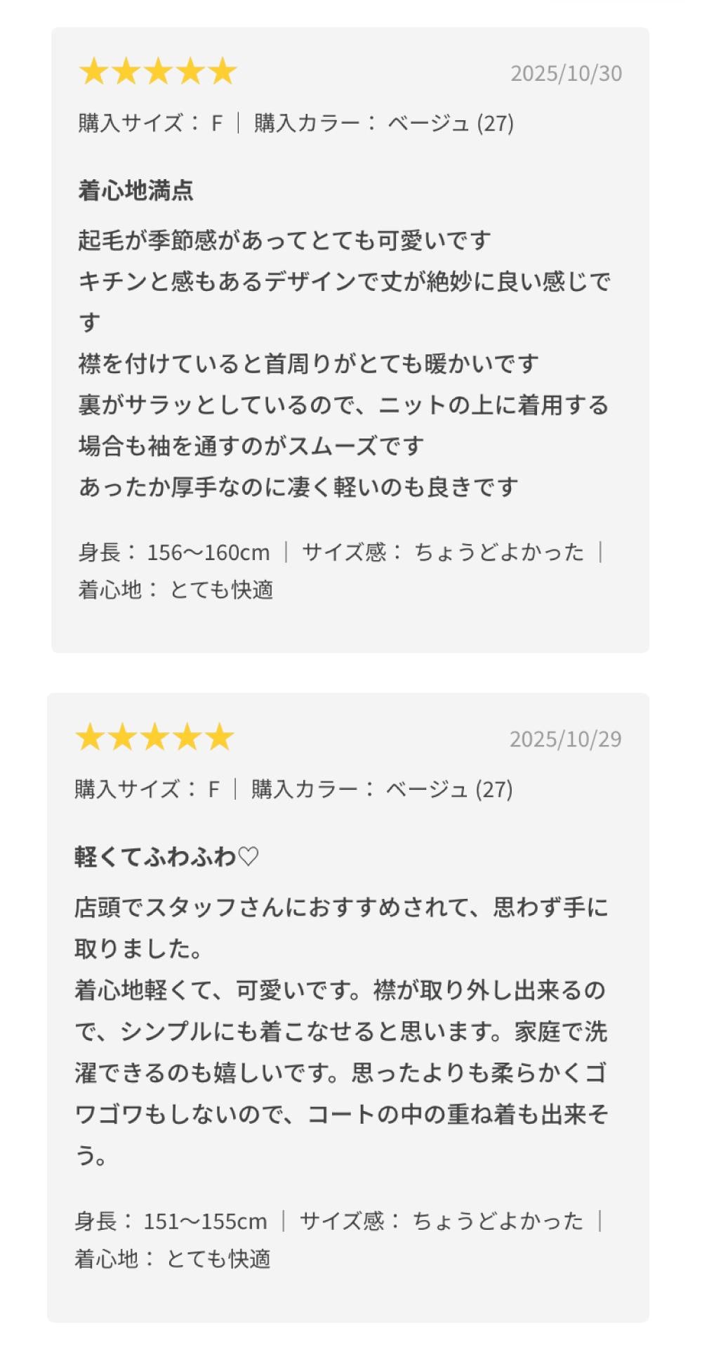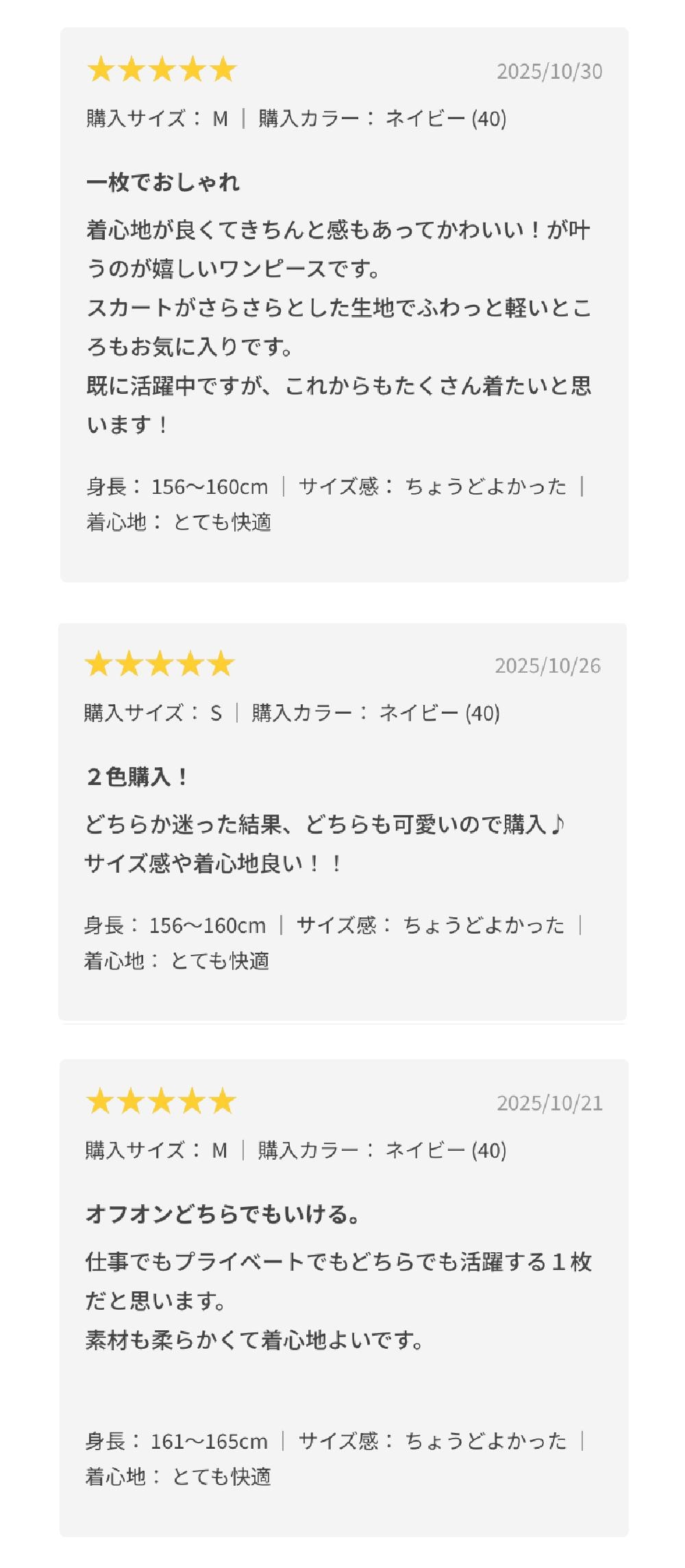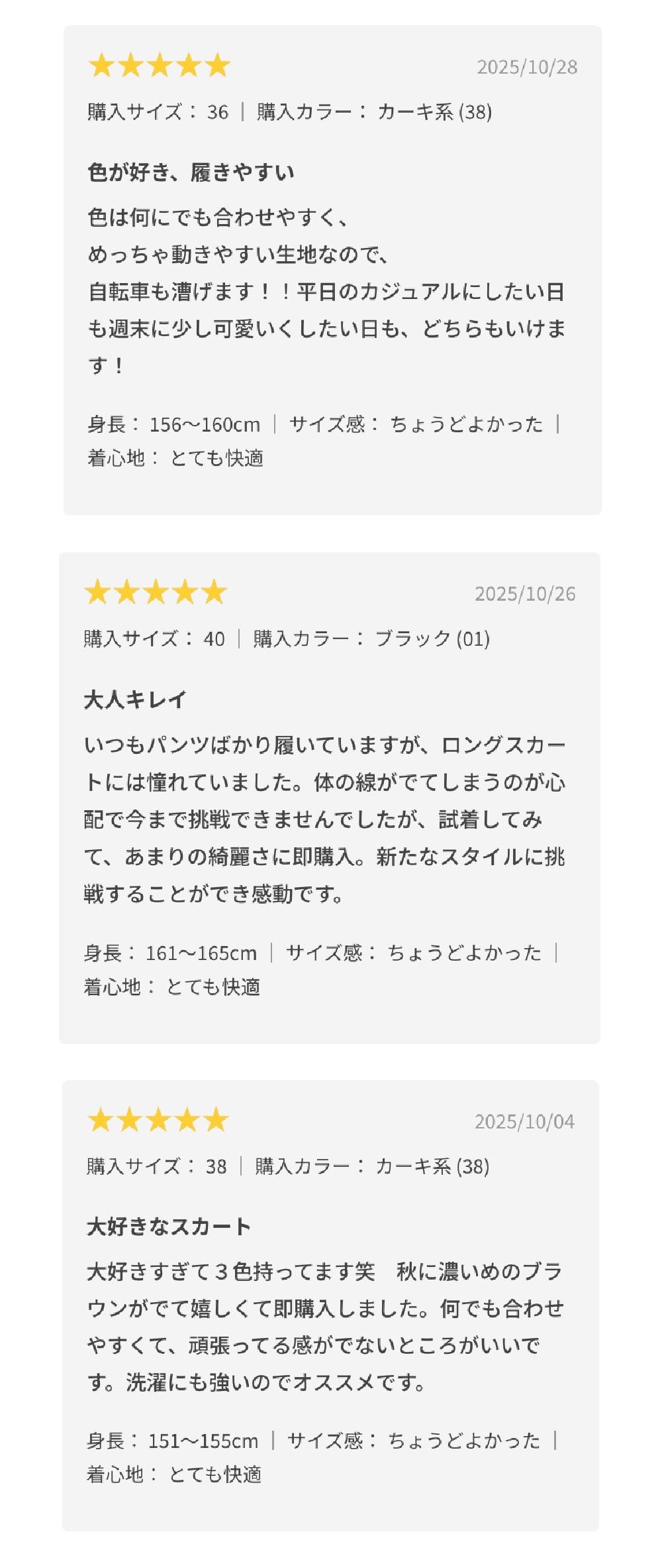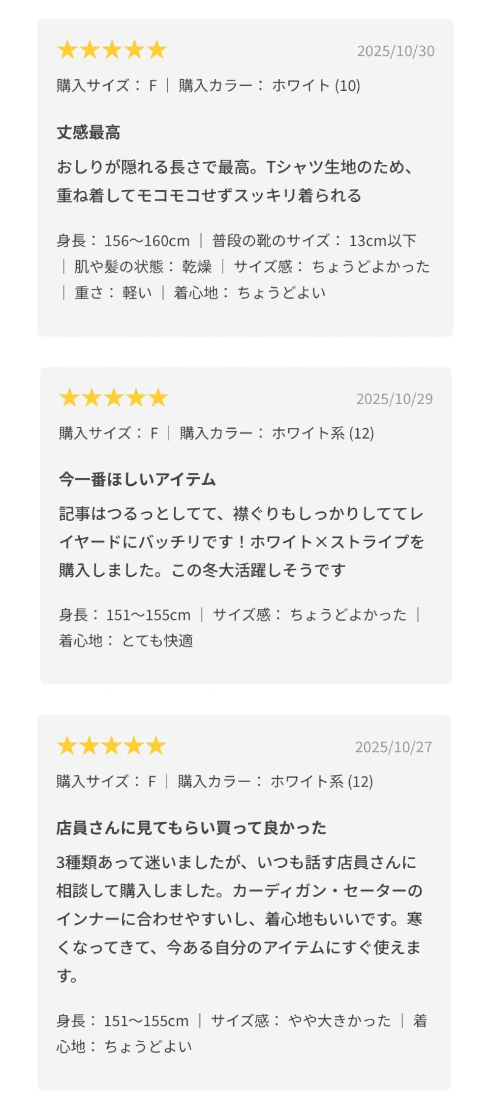 あなたの投稿するレビューも皆さまの着こなしの手助けになりますので、ぜひご感想をお寄せください。