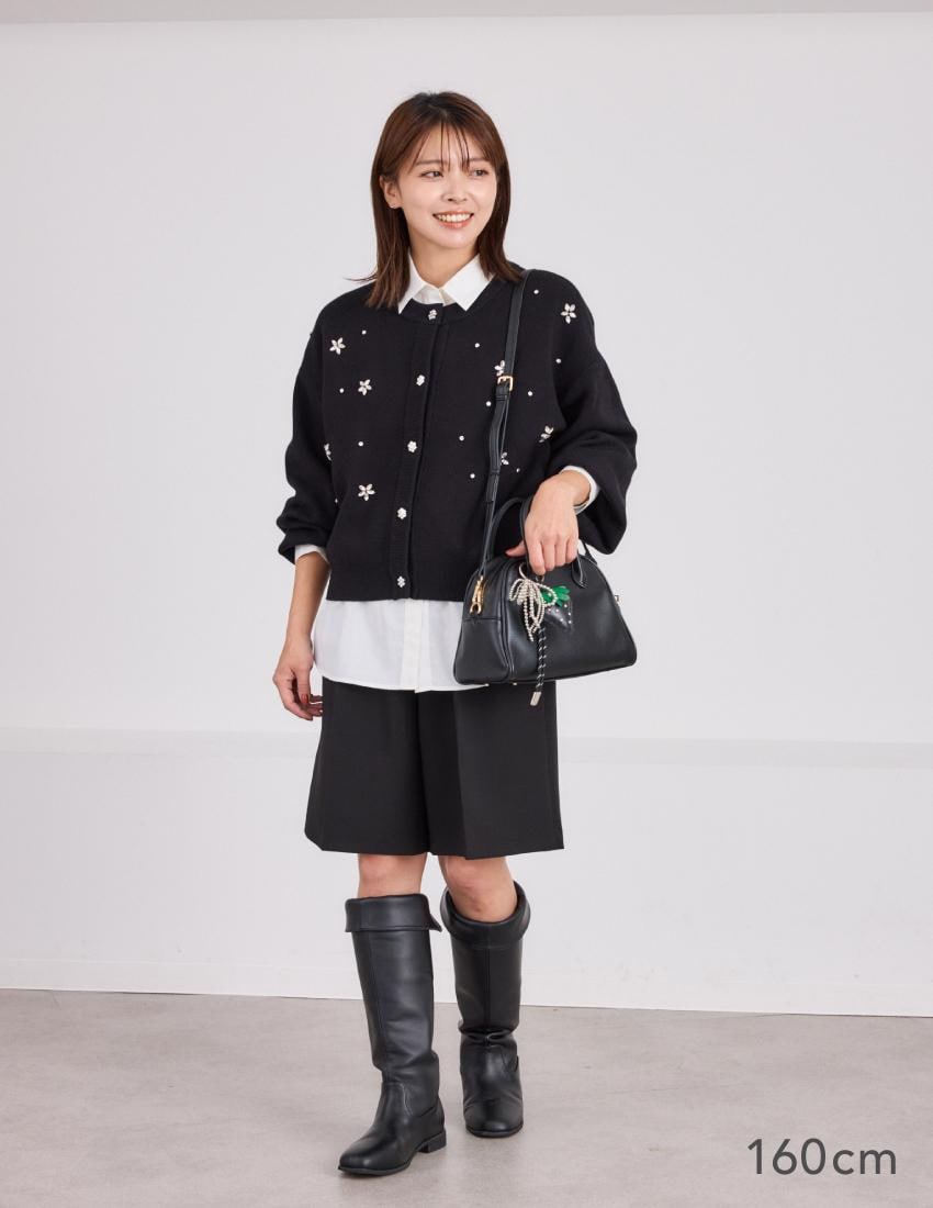 黒の奥行きとスパンコールのきらめきが際立ち、上品でこなれた印象になります。