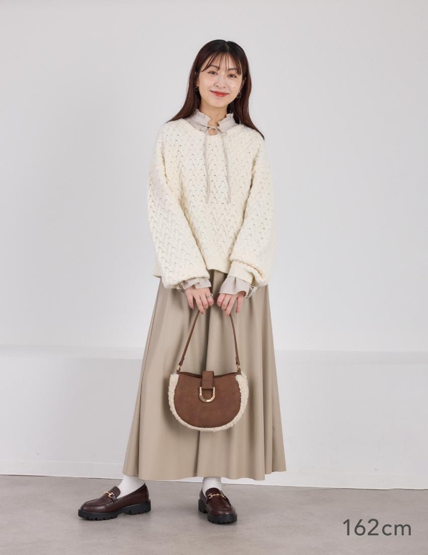 さりげなく衿元のリボンブラウスをのぞかせることで、甘い気分をキャッチ。