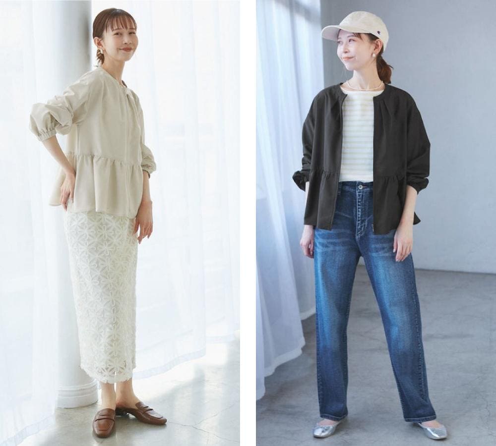 ペプラムシルエットでカーディガンの手軽さと、ブルゾンの機能性を持ち合わせた一着。