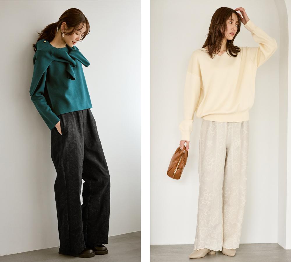 冬っぽいパンツに飽きたら、見た目は刺繍で華やか、実は裏起毛素材であたたかいパンツがおすすめ!
