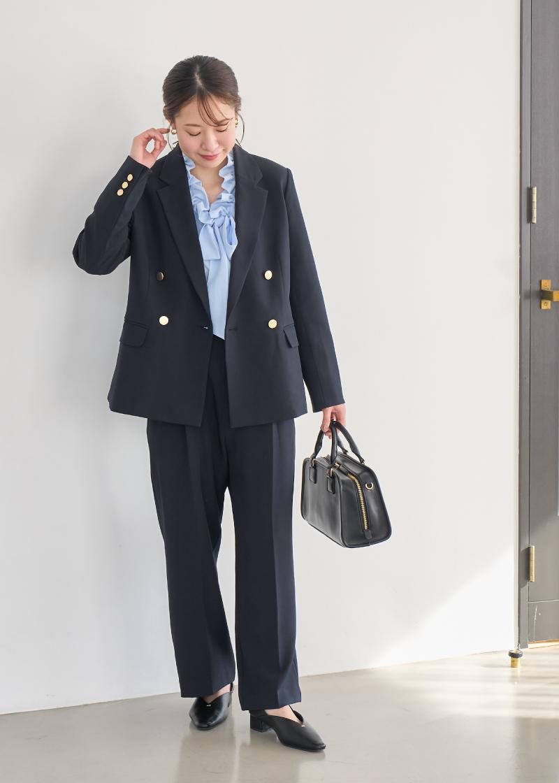 ✔︎お仕事や休日のおでかけはもちろん、フォーマルシーンでも頼れる金ボタンジャケット。