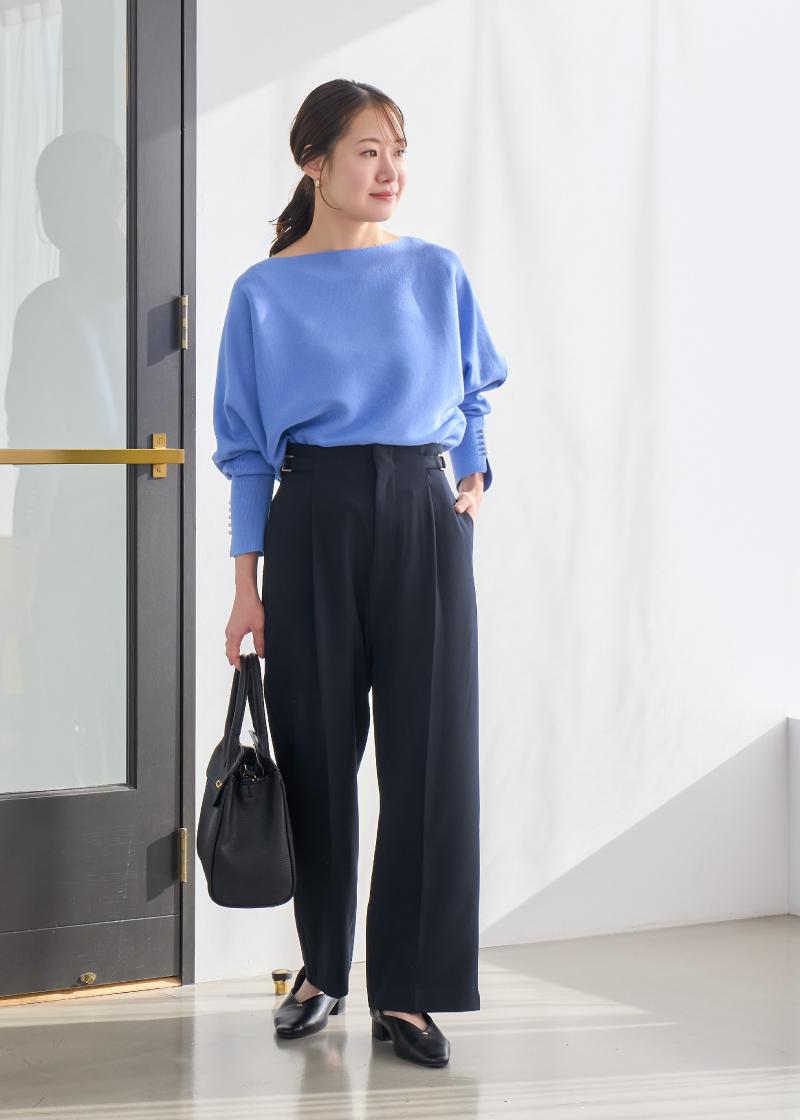 ✔︎ハイウエスト設計で脚のラインをきれいに演出するワイドパンツ。