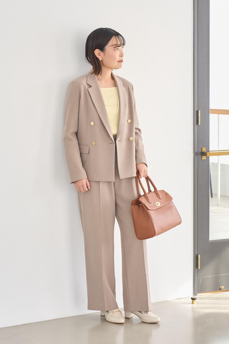 ベーシックなセットアップを今年らしくアレンジするには、トレンドのイエローカラーを合わせると◎!