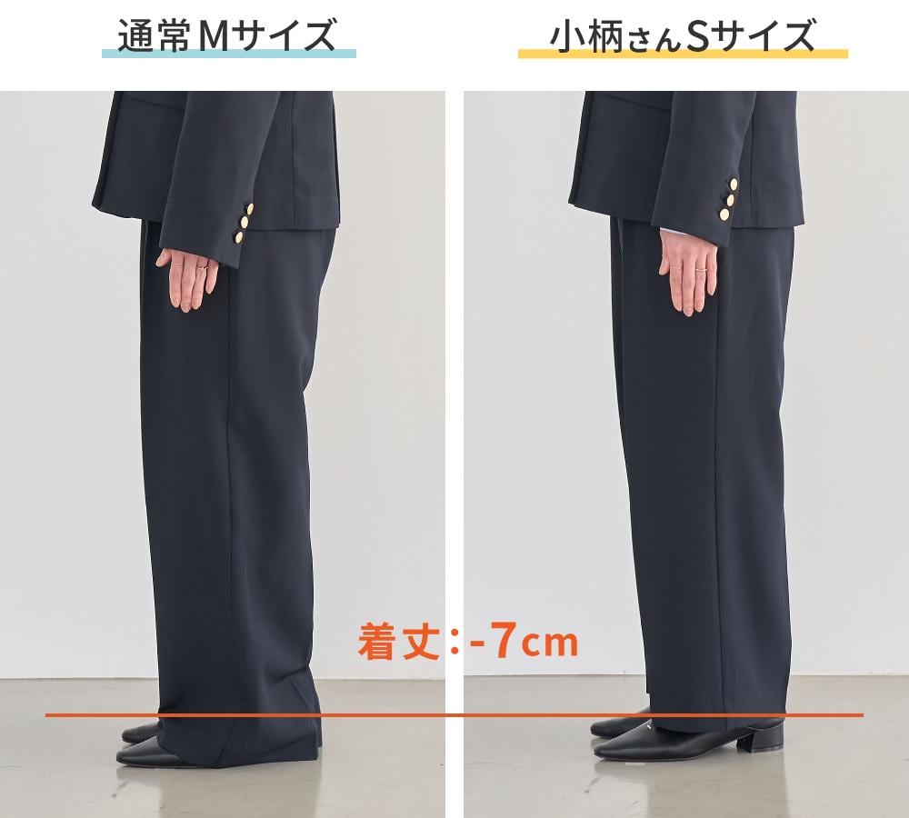通常Mサイズの股下丈と比べて、Sサイズは-7cm、