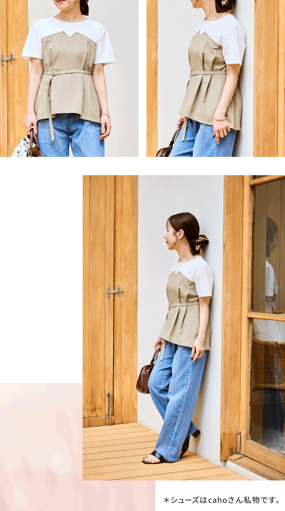 1枚でコーデが決まる、ビスチェ見えトップスに仕上げました。 ボトムスインしなくてもバランスよく見えるので、着るだけでスタイルが整います。
