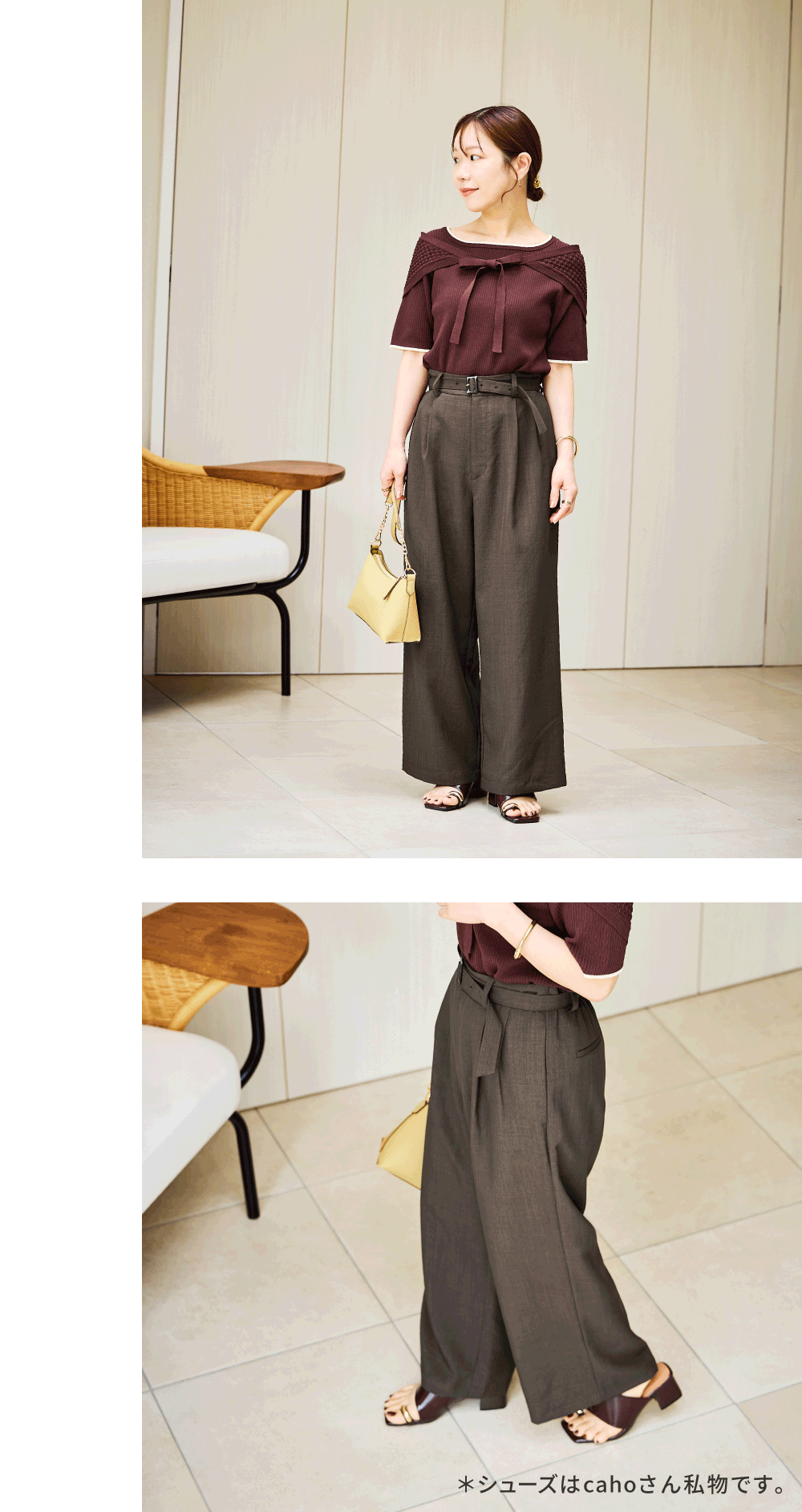 ◆ウエストタックで腰まわりをカバーし、すっきりとしたワイドシルエットに。