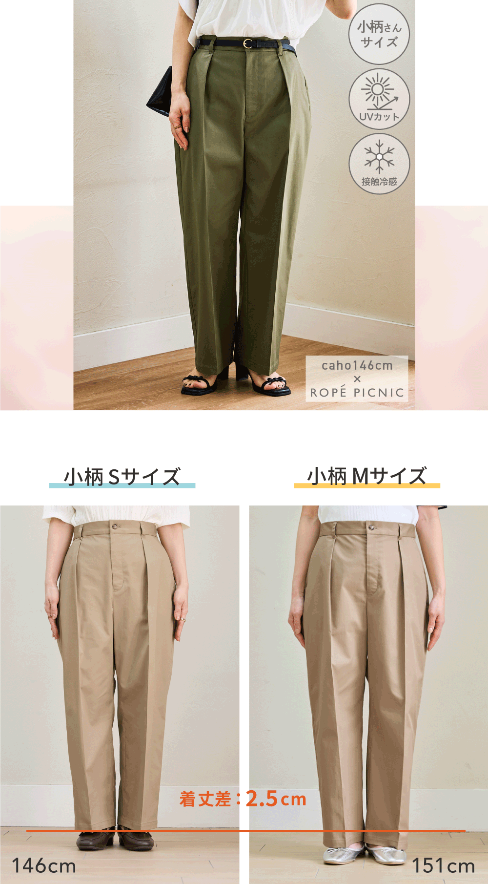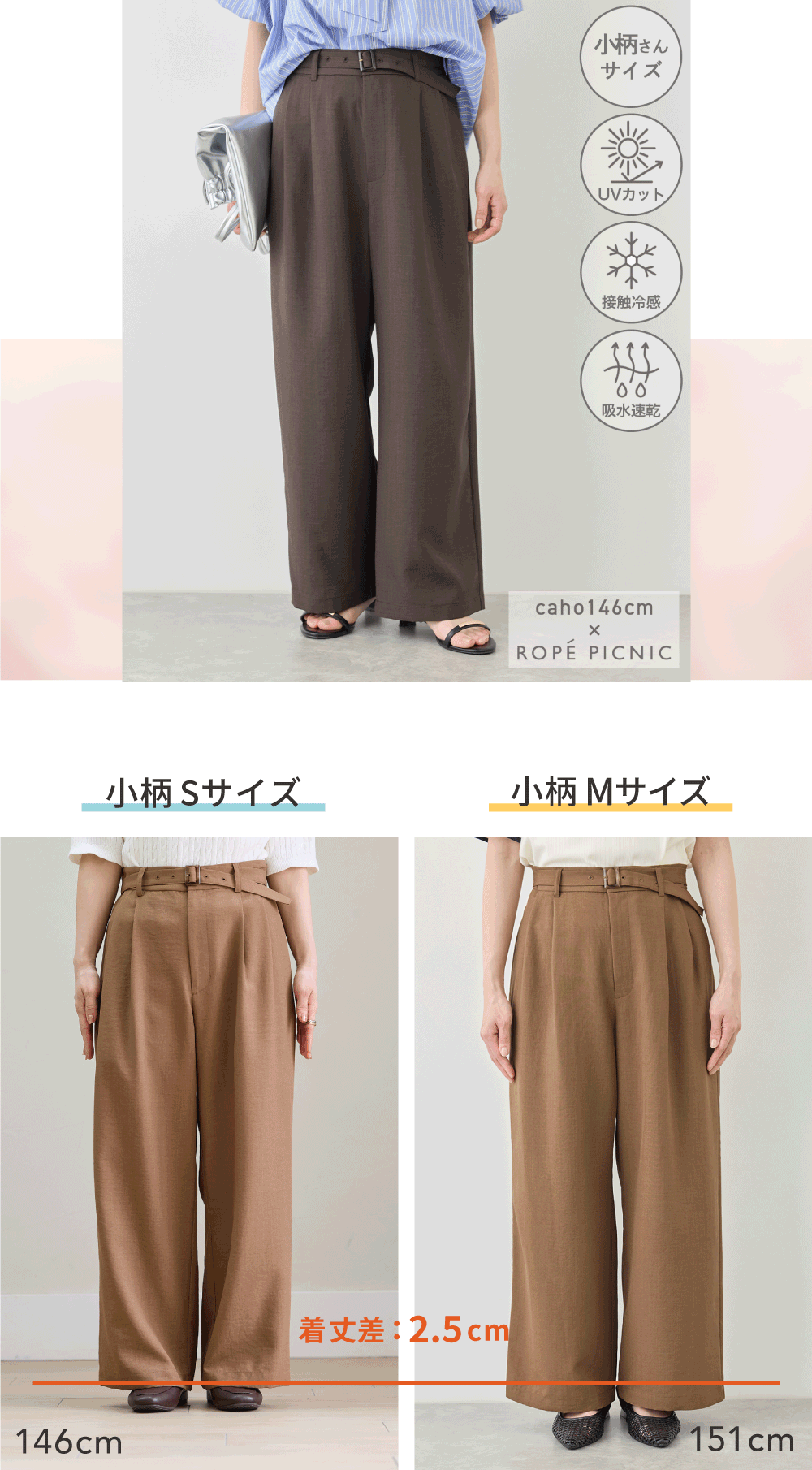 すとんと落ちるラインで、自然にスタイルアップして見えるシルエットにこだわりました。 広がりすぎないワイド感で、小柄さんもバランスよく着られます。
