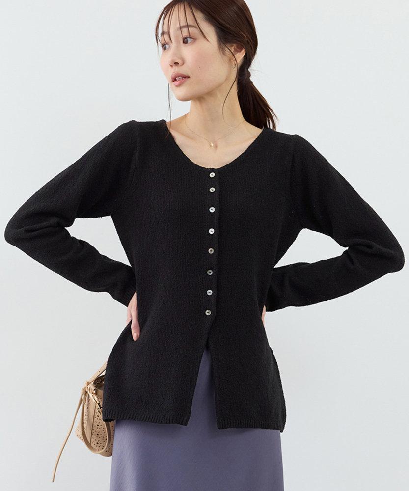 ウェーブタイプの定番といえば、クルーネック(丸首)のカーディガンですよね。