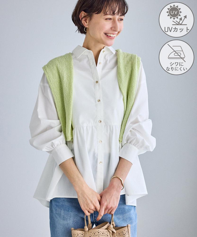 ふんわりと広がるペプラムシルエットや、フリルディティールの襟が印象的な大人のフェミニンシャツ。