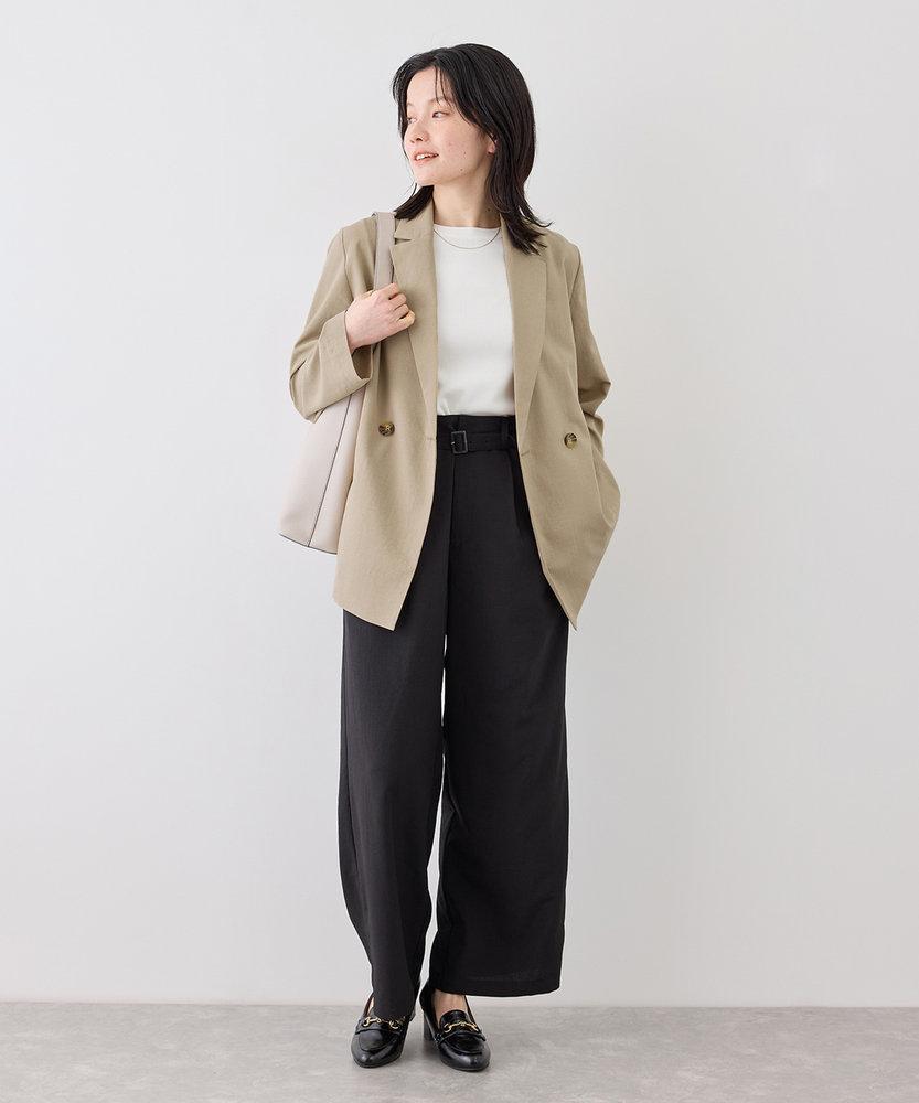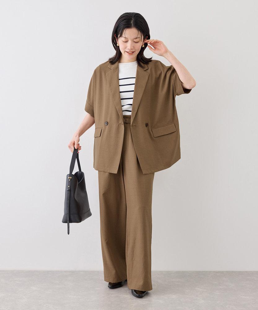 同素材のワイドパンツと合わせれば、セットアップも楽しめます。
