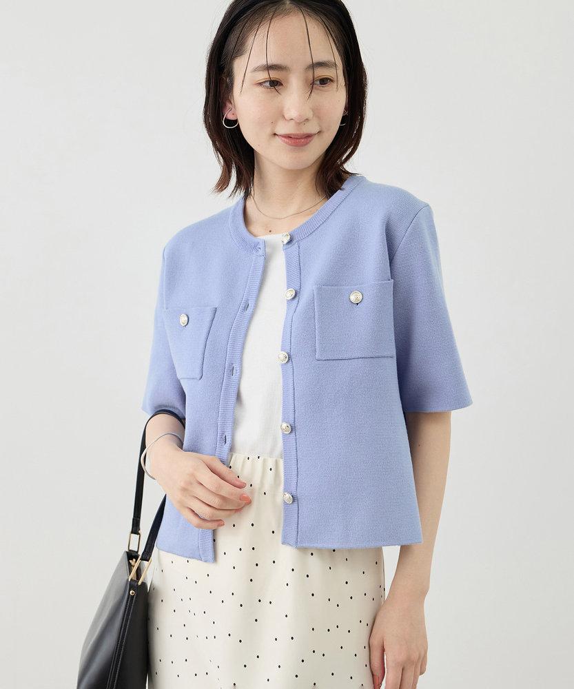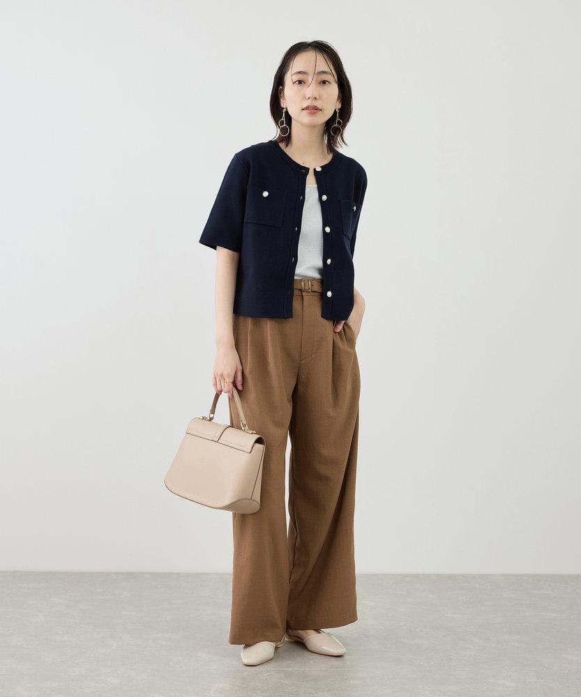 ショート丈×半袖のニットカーディガンは、ウェーブタイプなら絶対に重宝するアイテム。
