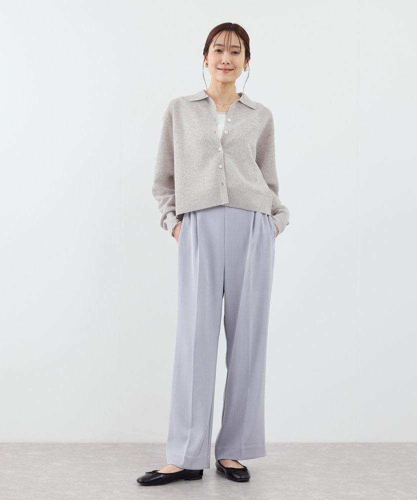 今年らしいポロ襟のカーディガン。ボタンの開閉で首元の開きを調整出来るので、ストレートタイプにイチオシの一枚です。