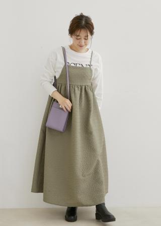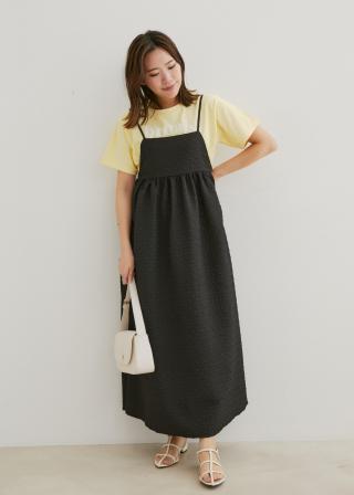 表面に凹凸感のある接結ジャガード生地を使用したキャミワンピースです。