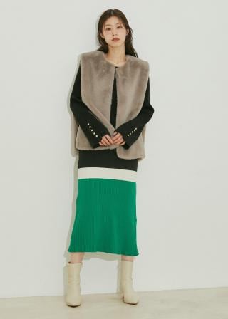 今年トレンドのカラーブロッキング仕様のニットワンピースです。