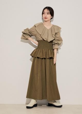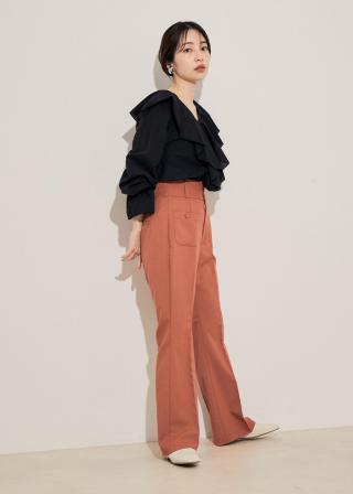 大胆な襟のラッフルフリルがデザインポイントのブラウス。